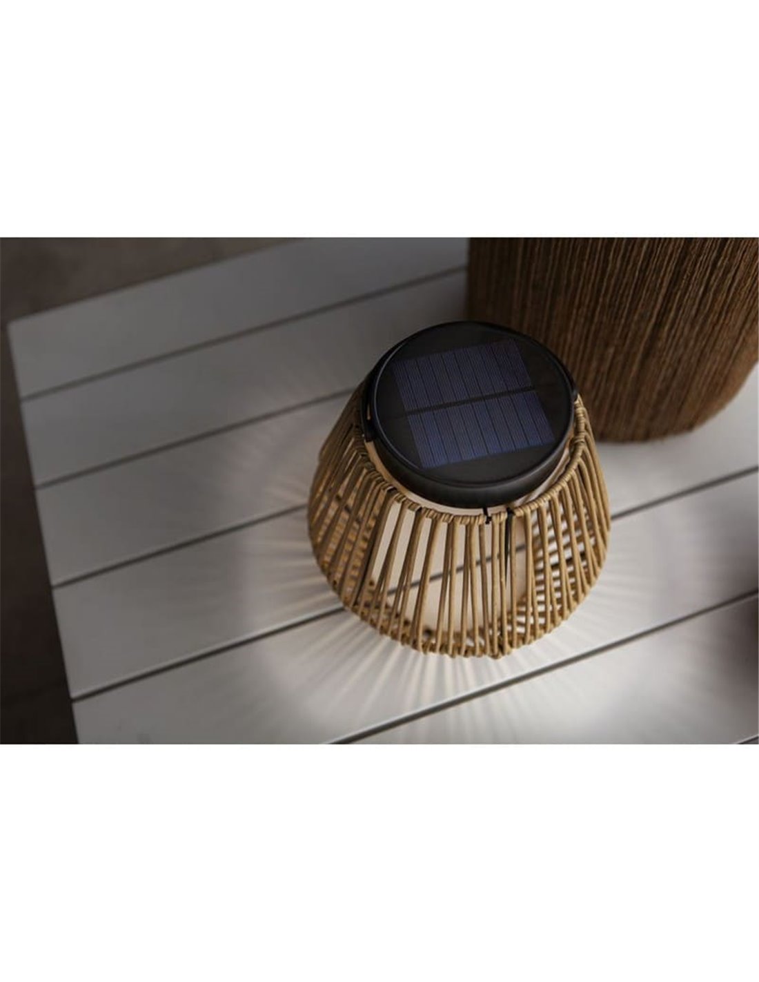 Découvrez la baladeuse solaire LED COPPA , réalisée avec du rotin résistant et un panneau solaire de 2,8W. Avec une température de couleur de 4000K et un indice IP44 pour une utilisation en extérieur. Éclairez votre espace sans câbles ni consommation d'électricité grâce à sa technologie durable.