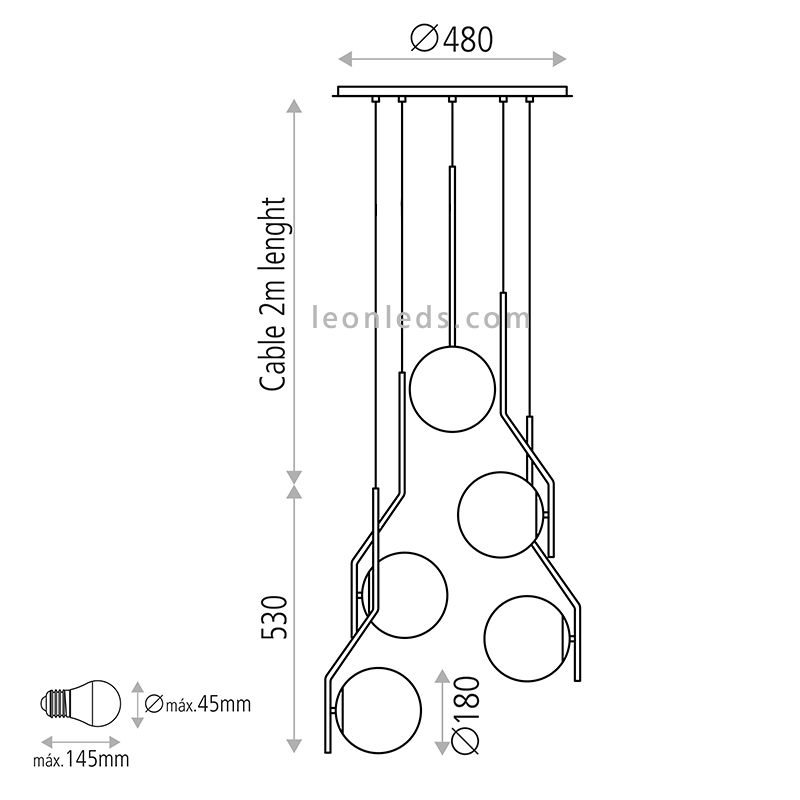 La suspension Maui 5L combine des touches d'élégance grâce à ses finitions noir mat ou vieil or plus tendance que jamais. Ce modèle, en particulier, a besoin de 5 ampoules LED E27 15W qui feront briller votre salon, ainsi que les espaces intérieurs de votre maison avec une touche chaleureuse pour obtenir une atmosphère idyllique, mais surtout relaxante.