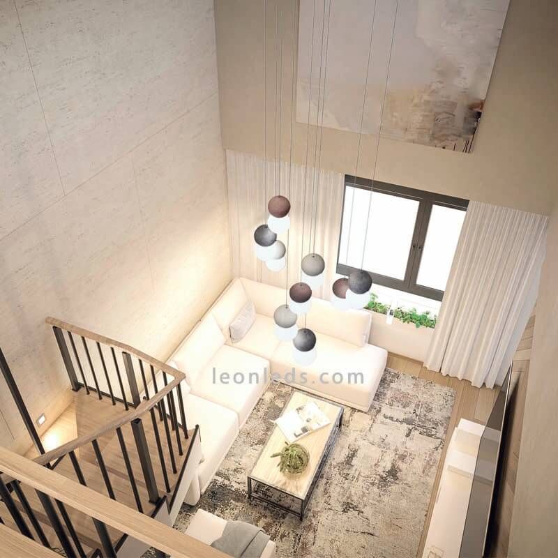 Avec cette lampe, vous pouvez éclairer et donner un design supplémentaire à n'importe quelle pièce avec de hauts plafonds car, grâce au fait qu'elle vous permet de régler la hauteur de chacun des câbles , elle vous permettra de l'adapter à la hauteur dont vous avez besoin. Il est également idéal pour éclairer les entrées et les cages d'escalier .