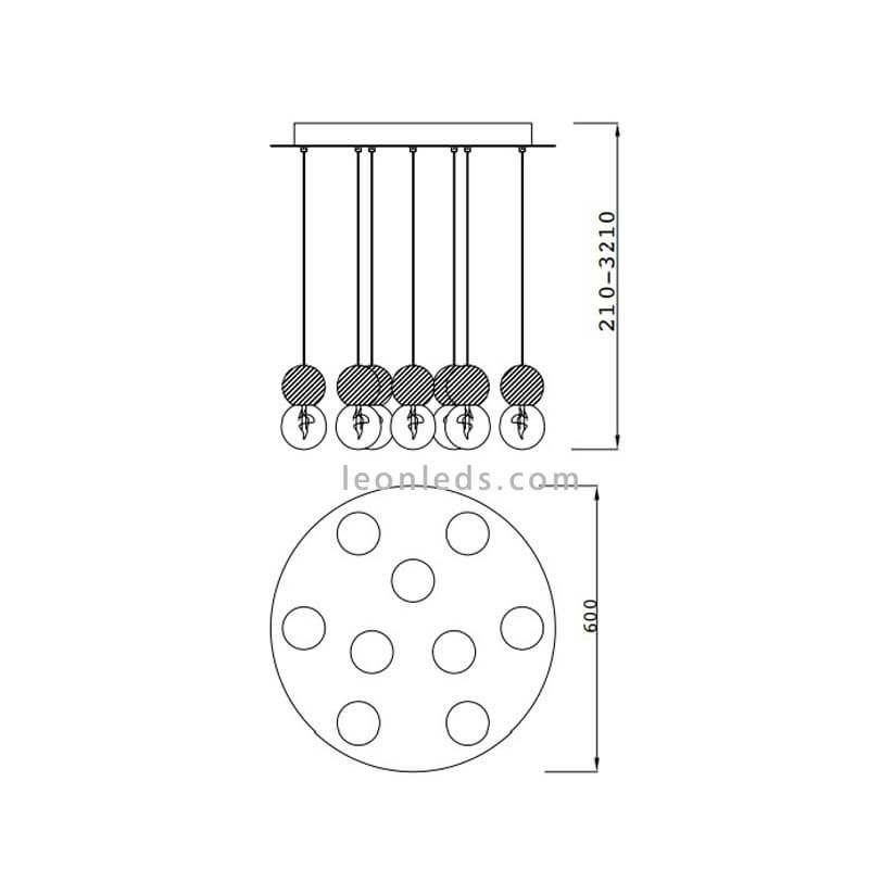 C'est la lampe parfaite pour éclairer de grands ou grands espaces. De plus, il est conçu avec un support de plafond en acier blanc auquel pendent 9 câbles que vous pouvez régler en hauteur de 21 à 321 cm , de sorte que vous pouvez personnaliser la hauteur de chacun des câbles, en obtenant différentes hauteurs d'écrans et un plus original et effet créatif.