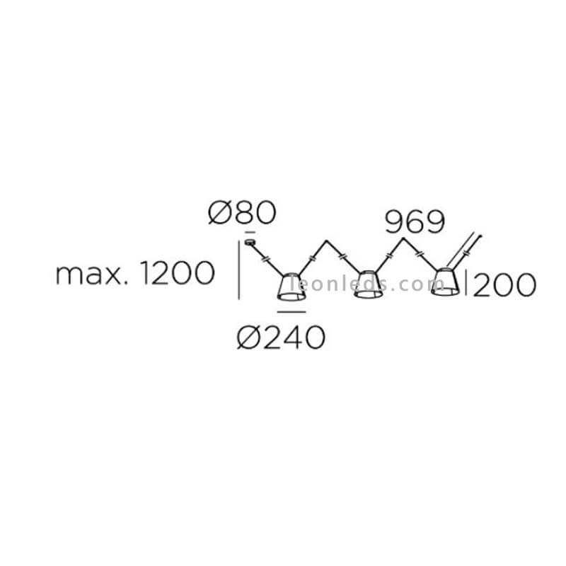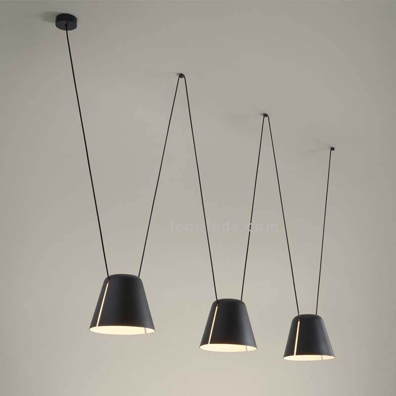 C'est un plafonnier suspension au style moderne et contemporain qui apportera prestance et élégance à vos décorations. Il nécessite l'installation de 3 ampoules E27 d'une puissance maximale de 23W et d'une mesure maximale de 120/100 mm (non fournies). Ses écrans sont suspendus à un câble noir avec des garnitures de la même couleur qui sont installées au plafond. Il a un point lumineux latéral parfait pour les espaces qui n'ont pas de point lumineux central, ce qui nous permet de personnaliser l'endroit à partir duquel la lumière sera émise sans avoir besoin de suivre le point lumineux du plafond. Nous pouvons déplacer le point lumineux de la lampe autant que nous le voulons.