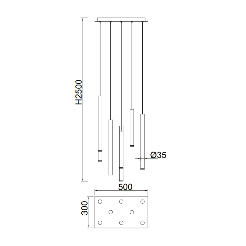Lampe suspendue LED rectangulaire Noire série Tubular 27.5W 3000K