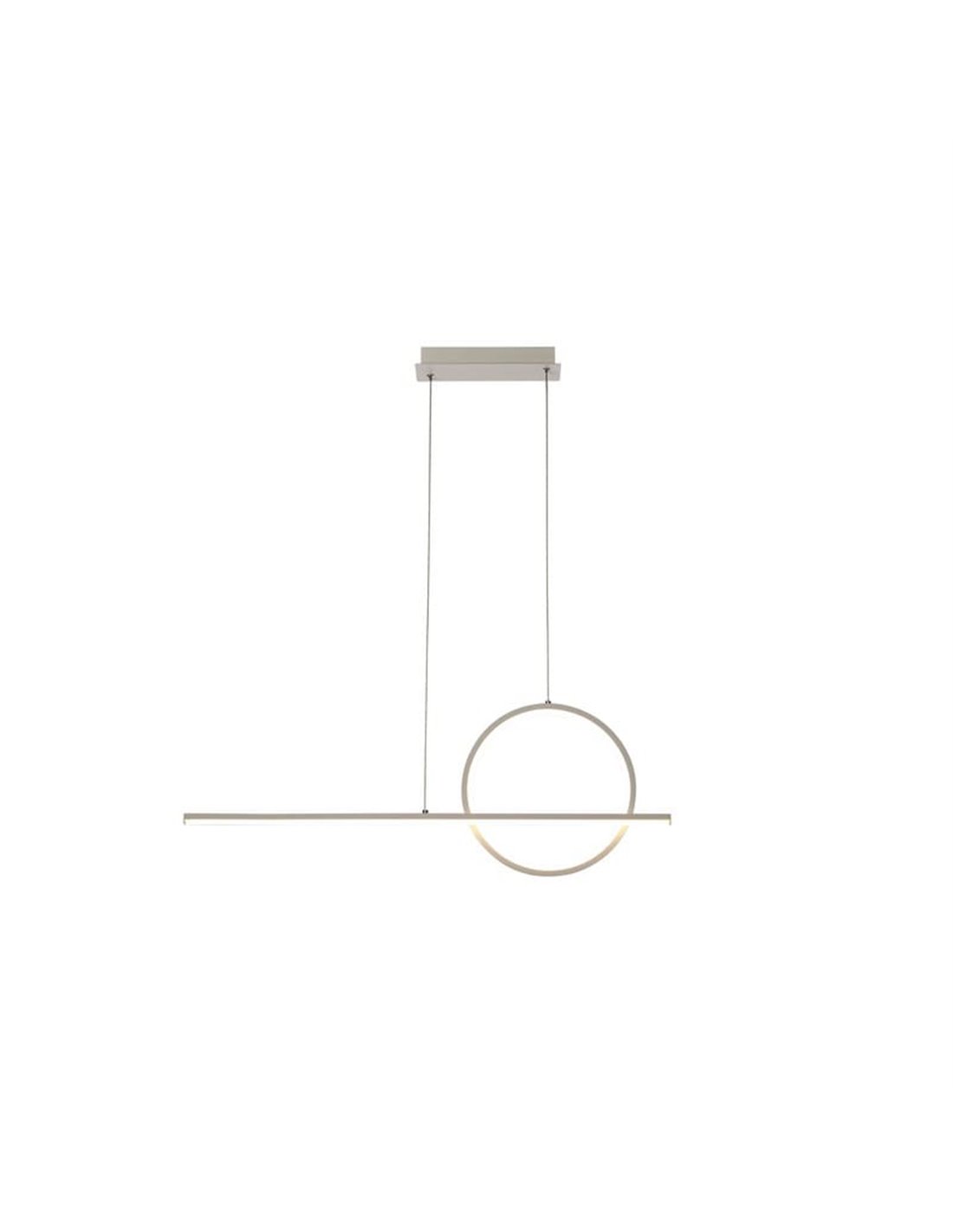 Suspension LED minimaliste, disponible en blanc et noir, elle intègre la technologie LED avec une puissance de 30W, une tonalité lumineuse chaude de 3000K et une intensité lumineuse de 2400LM, soit l'équivalent de plus de 160W d'une ampoule ancienne. Cette suspension LED minimaliste a une hauteur réglable jusqu'à 150 cm, une largeur de 8 cm et une longueur de 80 cm, la lumière est émise de l'intérieur de l'anneau et de la partie inférieure de la barre qui tient l'anneau, l'effet visuel Croyez que cette lampe est que l'anneau et la barre lévitent, offrant un effet visuel très différent du reste des lampes sur le marché.