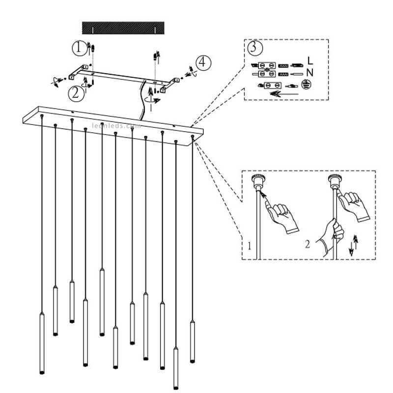Lampe de plafond Marley avec 4 spots 4XGU10 réglables en hauteur