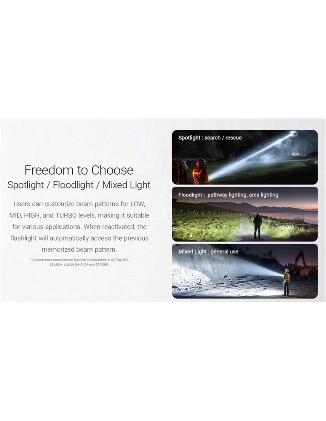 Grâce à sa puissance extrême , sa longue autonomie et ses multiples configurations de faisceaux, la Nitecore EX7 est idéale pour la chasse, le sauvetage, les patrouilles, la sécurité, l'armée et les activités en extérieur . Cette lampe torche offre des performances de niveau professionnel et la fiabilité qui fait la réputation de Nitecore.