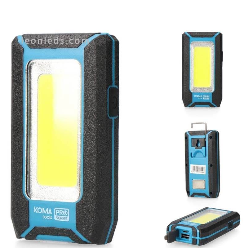 La lampe de poche LED professionnelle COB de 500 lumens de la série Koma Tools Pro a une puissance de 8 watts et comprend une batterie rechargeable de 3 400 mAh qui vous permettra d'utiliser votre lampe de poche librement sans vous soucier de la batterie. Pour le recharger, il suffit d'un chargeur USB universel de type mobile (non inclus).