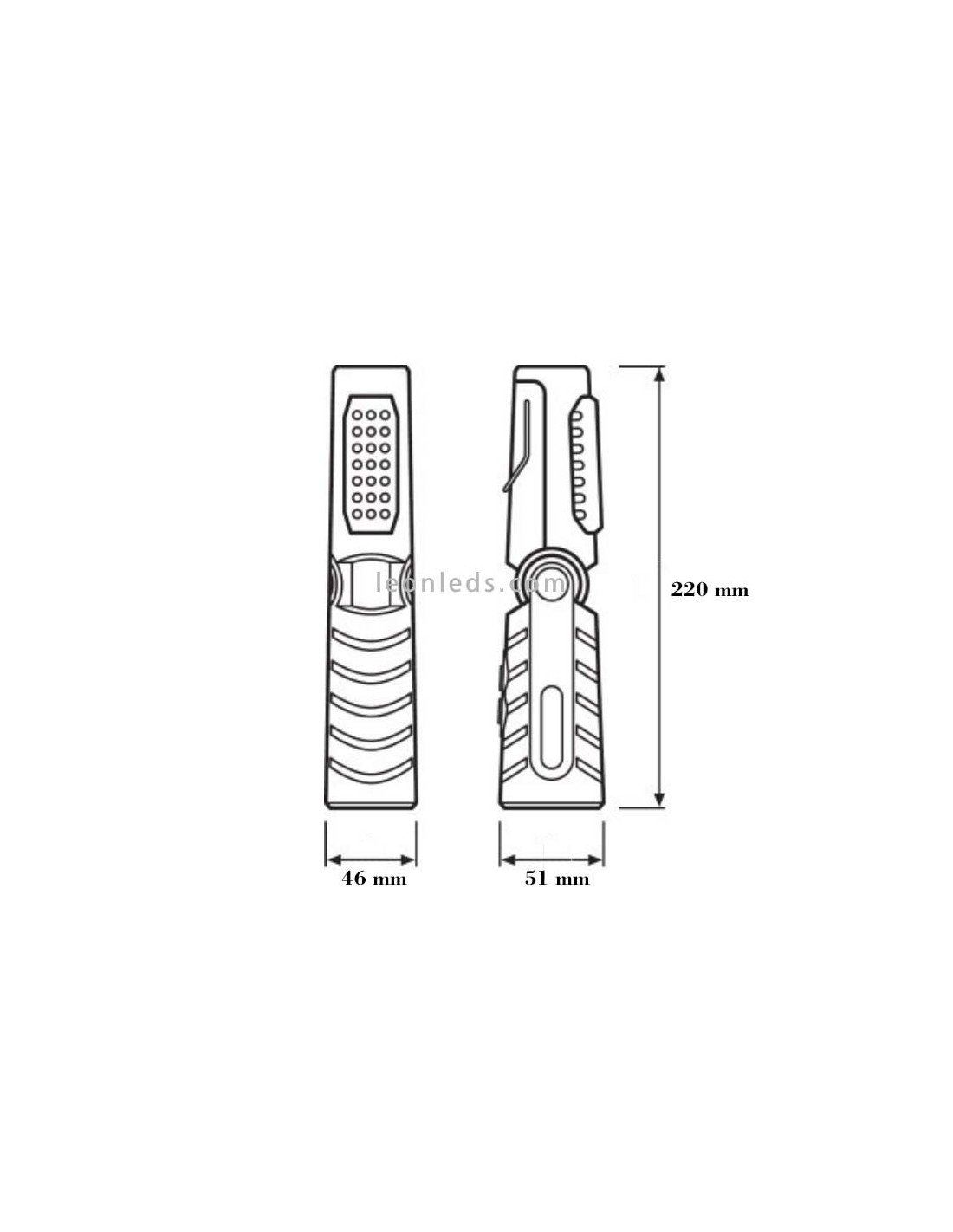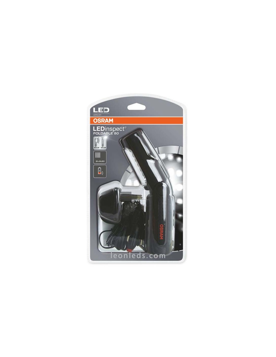 Lampe torche LED Osram LedInspect modèle Pliable 80 avec un rendement lumineux à l'avant de 80Lm et 25Lm en haut de la lampe torche. Dans la partie frontale, il dispose de 21 LED et dans la partie supérieure de 5 LED.