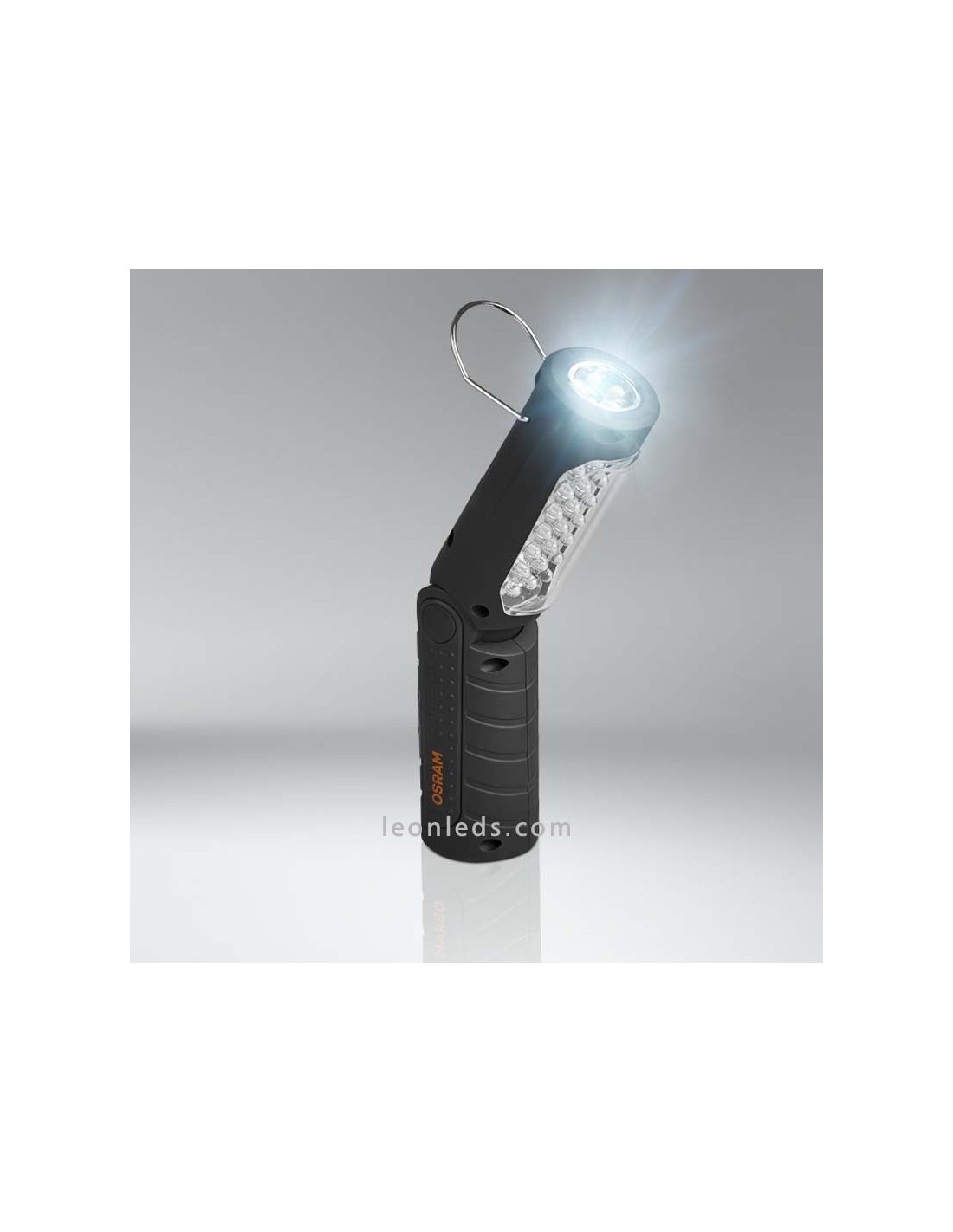 Lampe de travail LED magnétique Osram LEDInspect avec une puissance de 80Lm (lumière principale), 25Lm (lumière de la tête de la lampe de poche), indicateur d'état de la batterie et une batterie de 1600mAh.