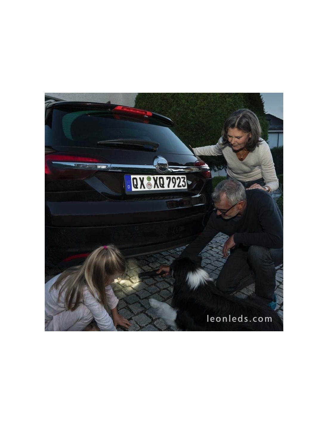 La lampe de poche LED Osram est ronde et s'articule au milieu de la lampe de poche. La base de la lanterne est magnétique et offre deux lumières, une à l'avant et une sur le dessus de la lanterne. Il a un crochet en métal pour accrocher la lampe de poche si nécessaire, dans l'armoire à outils.