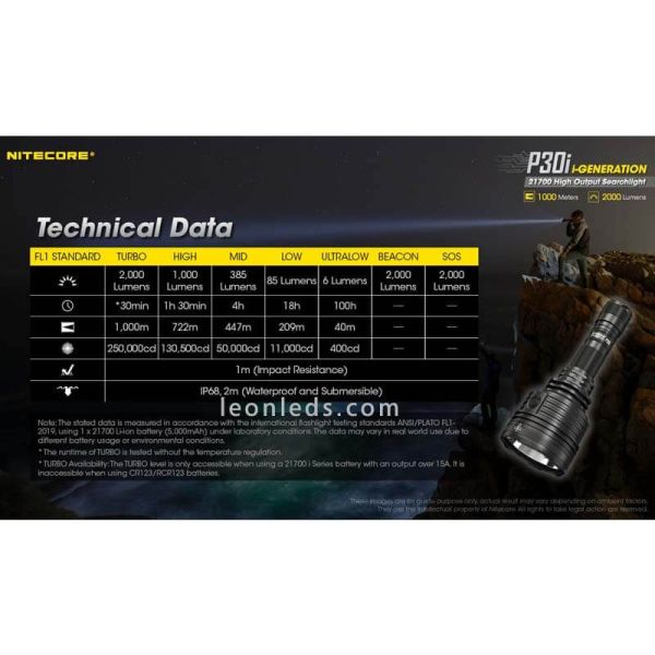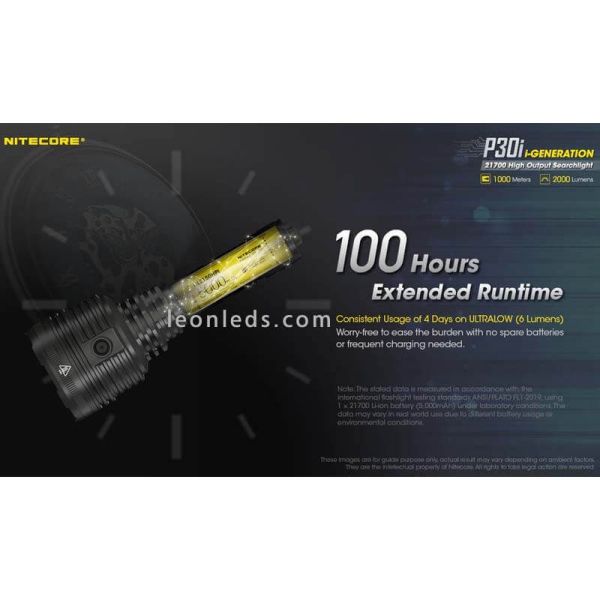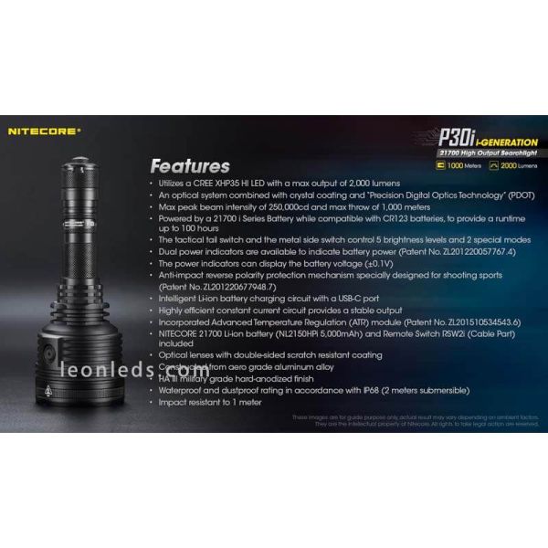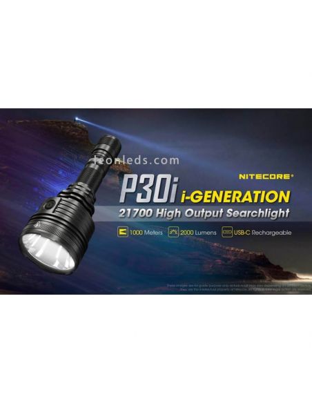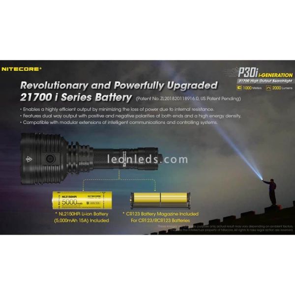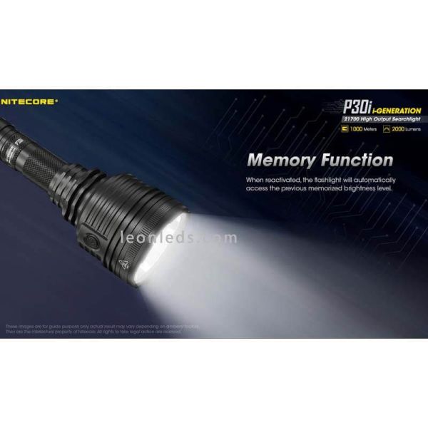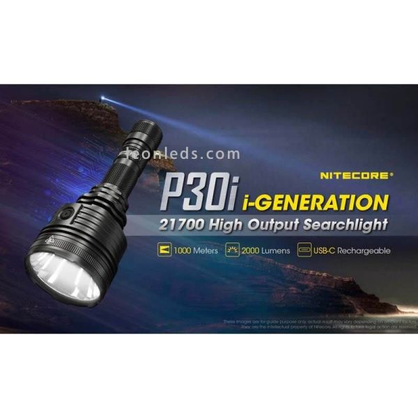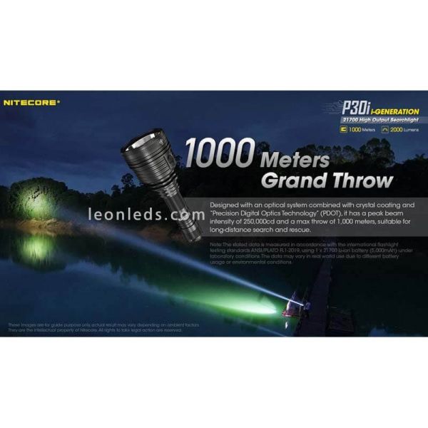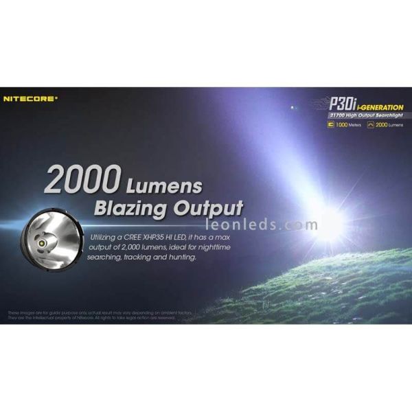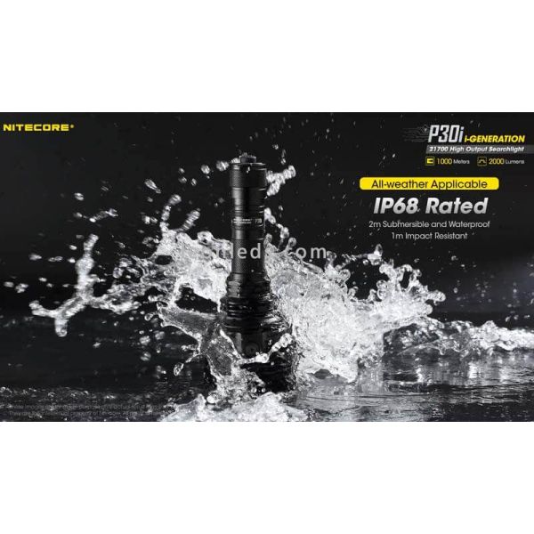 La lampe de poche à LED Nitecore P30i avec une longue portée de 1000 mètres est une lampe de poche qui contient une LED de type CREE XHP35 HI qui permet une portée de 1000 mètres qui permet une sortie de lumière uniforme sans éblouissement, avec une puissance maximale de 2000 lumens.