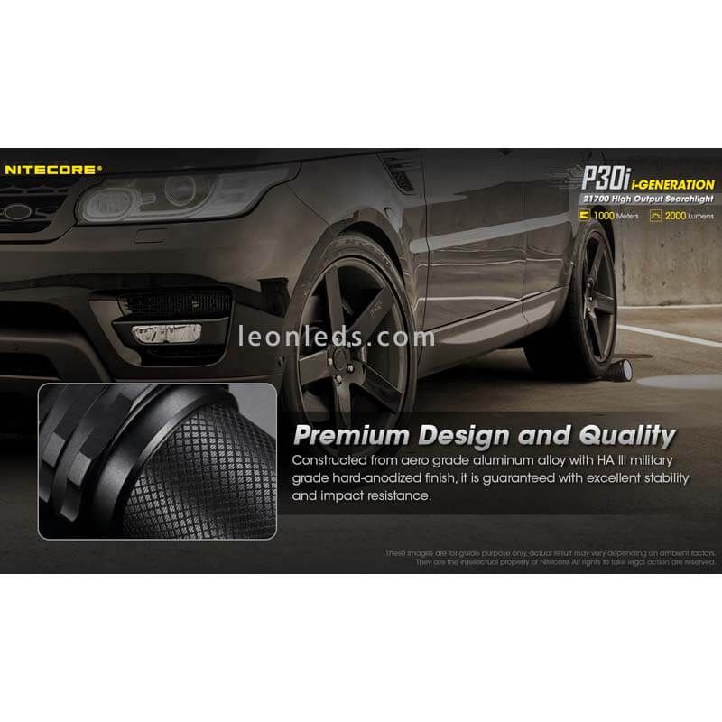 Nitecore P30i est composé d'un corps en alliage d'aluminium, offrant un confort maximal et une prise ferme supérieure. Il offre de très bonnes performances, avec un gabarit très confortable.