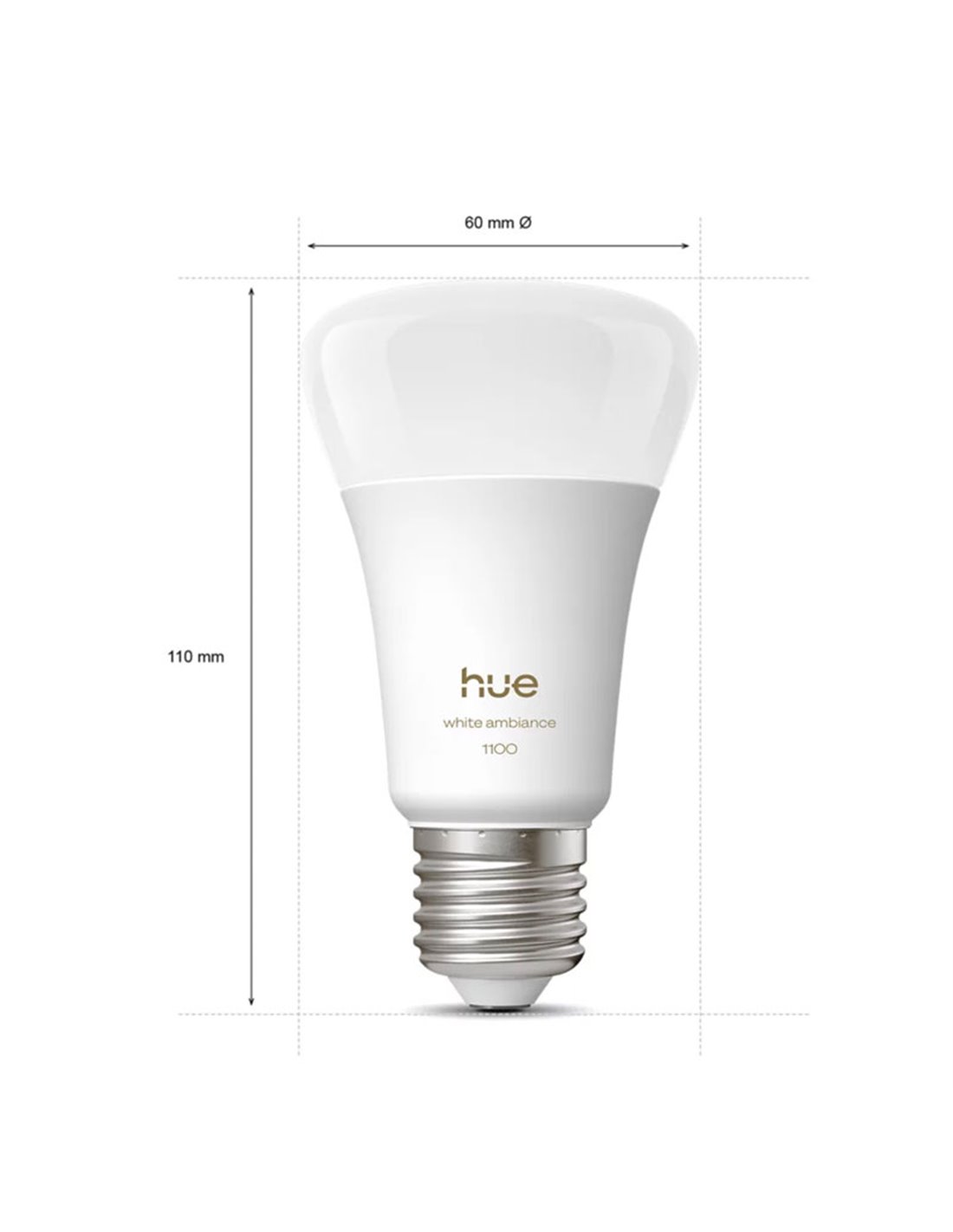 Avec le pack de 2 ampoules Hue White Ambiance E27 1100 lm, vous disposerez d'une lumière polyvalente, à intensité variable et facile à contrôler, parfaite pour moderniser votre maison avec l'écosystème Philips Hue .