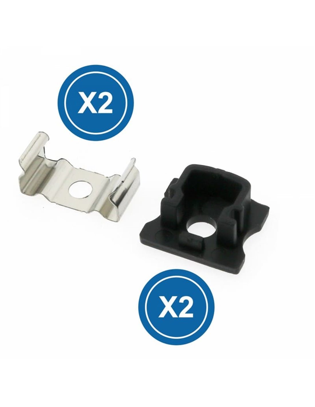 Accessoire de remplacement pour l'installation de profilés en aluminium avec rubans LED . Ce lot de 2 embouts et 2 clips est conçu pour le profilé LM3720 , assurant une finition plus nette et une fixation stable.