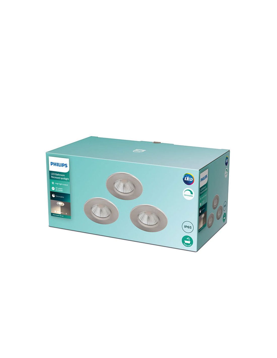 Ce pack comprend trois spots encastrés Philips DIVE finition nickel , conçus pour un éclairage chaleureux et confortable dans les salles de bains et les pièces humides. Chaque spot intègre une LED de 5 W (environ 350 lm), est dimmable et diffuse une lumière de 2 700 K avec la technologie EyeComfort , idéale pour créer une ambiance relaxante sans fatigue oculaire. Leur indice de protection IP65 garantit une protection contre les jets d'eau, les rendant parfaitement adaptés aux abords de la douche.