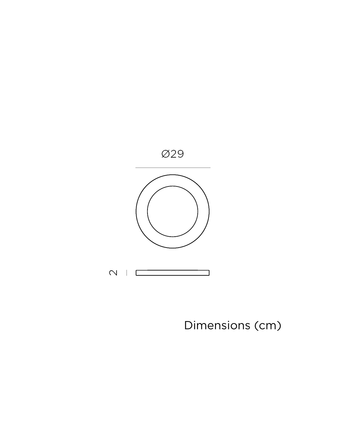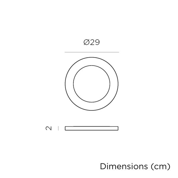 Cet appareil a des dimensions de 29 cm de diamètre et 2 cm de profondeur.