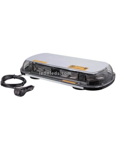 Mini pont LED plat orange homologué pour 12 et 24 volts, avec câble de 3 mètres et connecteur allume-cigare avec interrupteur marche/arrêt et un autre interrupteur pour modifier la fréquence lumineuse. Ce Mini Pont LED est homologué avec l'Agrément NR65 TA1 et peut remplacer la balise LED sur un tracteur, il peut également être installé sur une voiture pilote ou des véhicules tels que des camions, des grues, des camions poubelles...