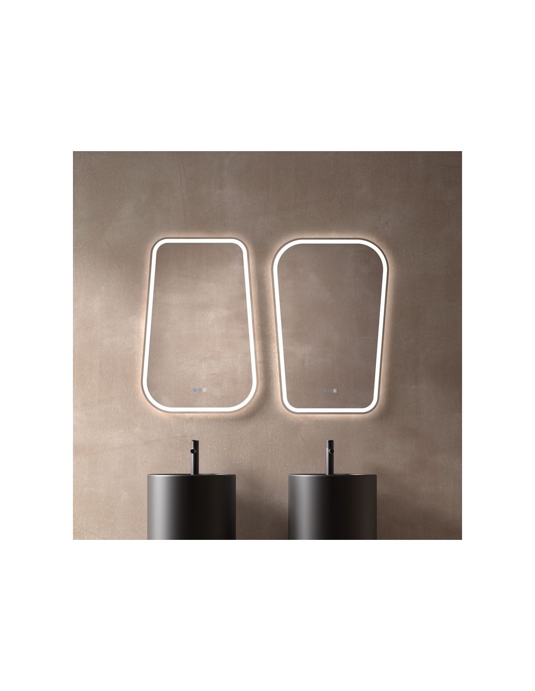 Le premier bouton tactile permet d'allumer et d'éteindre le miroir, et le Dimmer nous offre la possibilité de sélectionner l'intensité de la lumière ; cette option reste également mémorisée lors de la prochaine allumage ;
