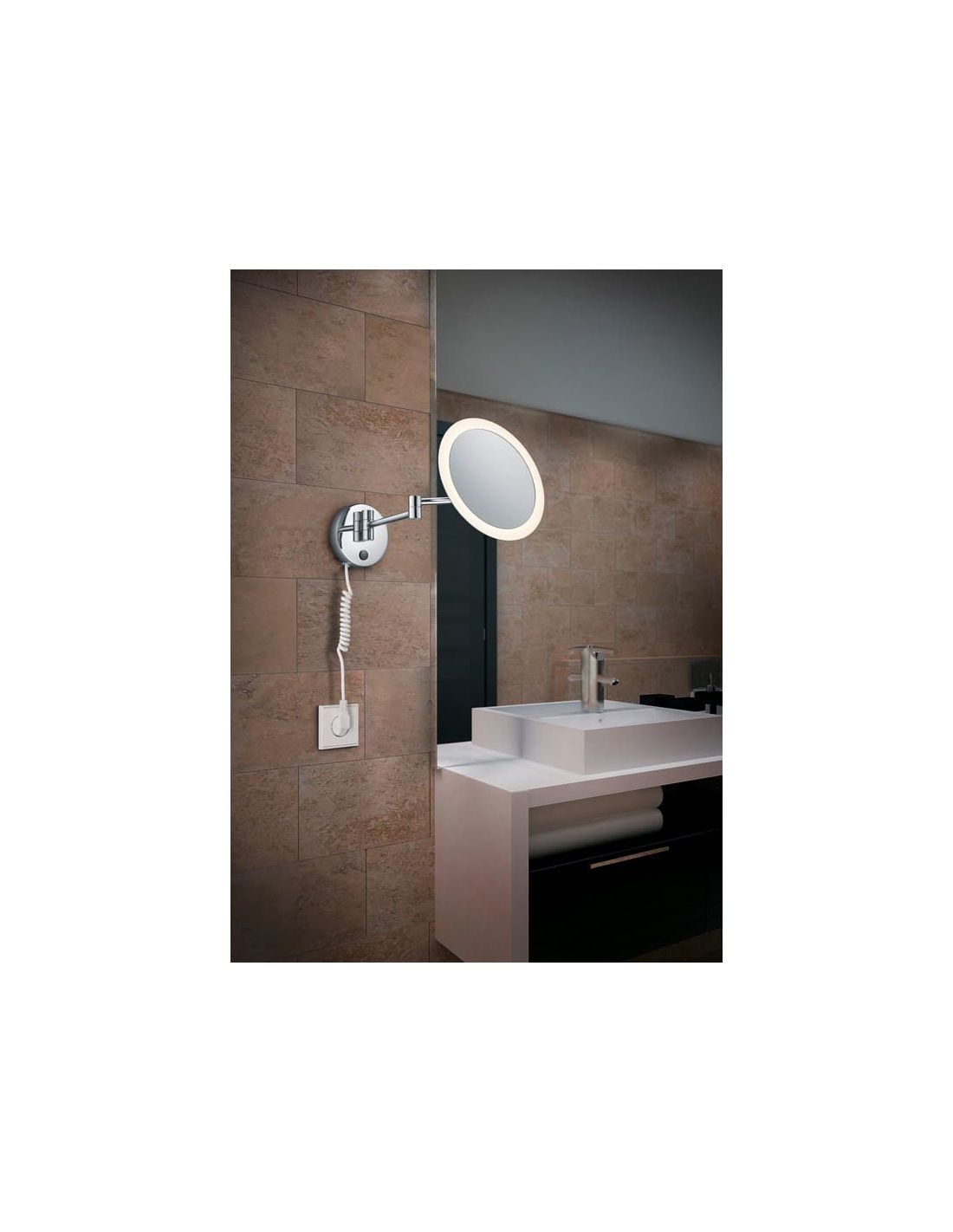 L' applique murale View intègre un miroir avec un grossissement à 3 niveaux dont vous pourrez tirer une grande utilité dans les pièces où vous vous consacrez à vos soins personnels. Elle émet une lumière blanc chaud avec une température de couleur de 3 000K. Il est éclairé avec une ampoule LED SMD incluse d'une puissance maximale de 3W et d'un flux de 280 lumens.