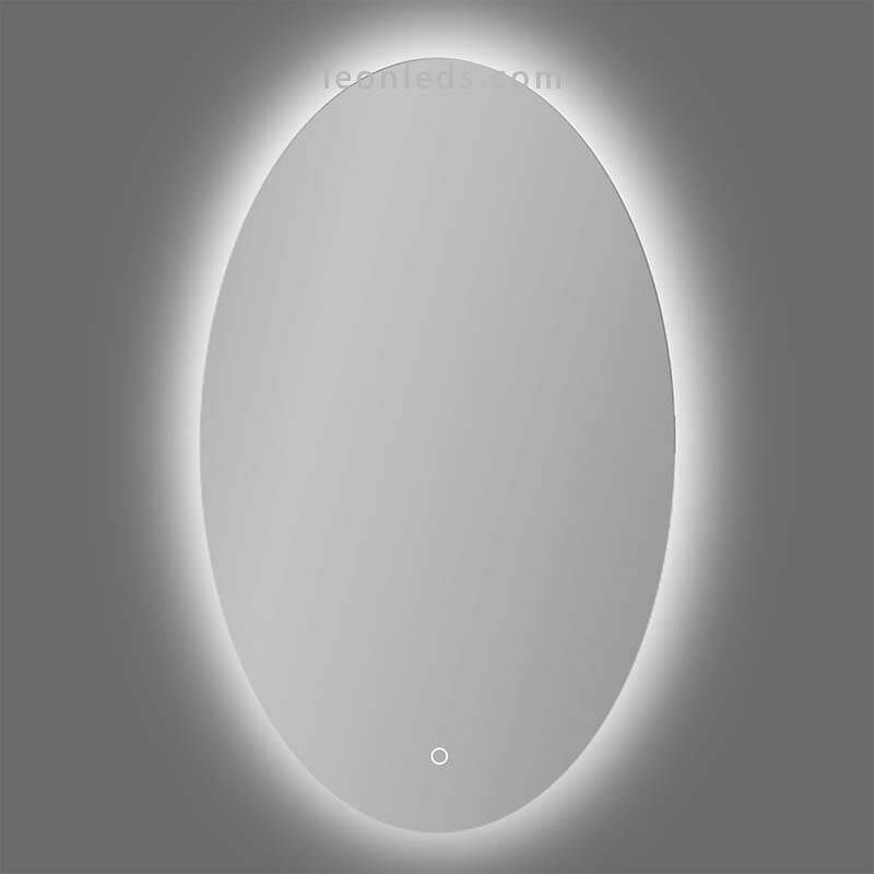 Miroir lumineux ovale à LED, modèle Adriana , pour installation dans une salle de bain, d'une puissance de 45 W, d'une intensité lumineuse de 3 932 lm, commandé par un bouton tactile et disponible en 2 tons de lumière différents : lumière chaude 3 000 K et lumière naturelle 4 000 K. Ces options peuvent être sélectionnées lors de l'achat du miroir de salle de bain à LED.