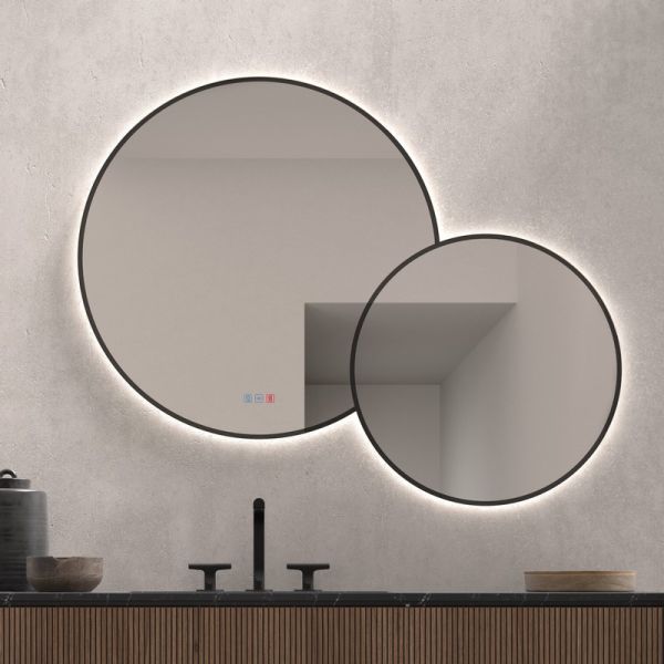 Miroir LED rétroéclairé PÓPULO cadre noir 120x95cm avec triple écran tactile, variateur et antibuée