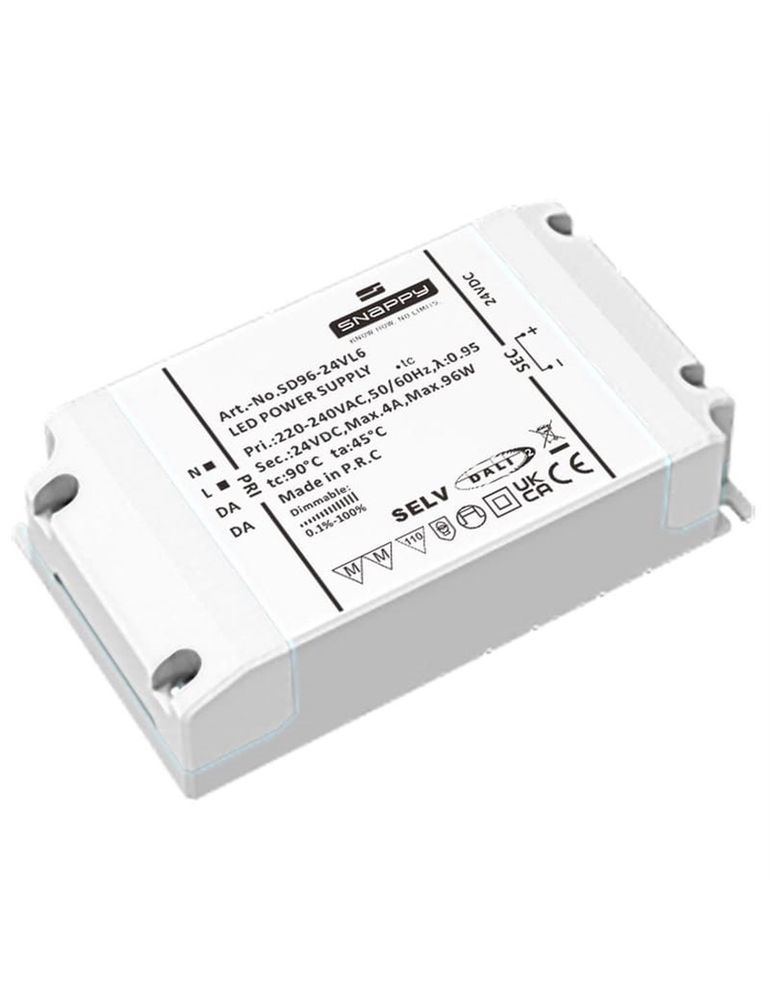 - Plage de puissance de sortie : 0-96 W , adaptée à la somme des puissances de jusqu’à cinq suspensions LED dans le système.