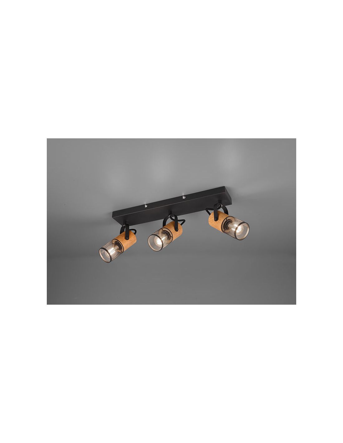 Bande de plafond en bois et métal de style vintage de la collection Tosh de Trio Lighting. Il dispose de 3 spots orientables verticalement avec trois écrans en forme de filet en métal noir et une base en bois. Ces spots sont fixés sur une base en métal noir qui s'installe au plafond de la pièce choisie (il ne comprend pas d'interrupteur marche/arrêt). Nécessite l'installation de 3 ampoules E14 (non incluses) d'un maximum de 40W. Vous pouvez choisir le ton clair que vous préférez en fonction de la pièce et de sa taille. Chez LeónLeds, nous recommandons l'installation d'ampoules de style vintage à filament visible pour mettre en valeur leur style rétro-industriel.