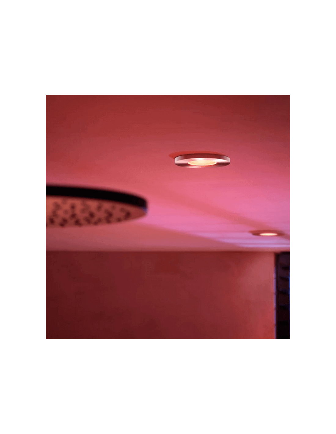 Pack de 3 Spots LED Encastrables Smart Chrome Xamento 3x4,2W : transformez votre maison avec un éclairage intelligent. Chaque ampoule offre 16 millions de couleurs et de nuances de blanc (2000–6500K), contrôlables via Bluetooth ou via le pont Hue pour des fonctionnalités avancées. Avec un indice de protection IP44 , ils sont idéaux pour les salles de bains et les zones humides. Son design chromé moderne s'intègre parfaitement dans n'importe quel décor. Ils nécessitent un diamètre de coupe de 70 mm et ont un diamètre extérieur de 93 mm.