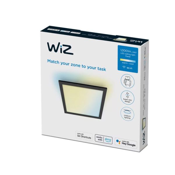 Vous pouvez également sélectionner l'un des modes prédéfinis, tels que le mode concentration ou relaxation. Il suffit d'ajuster les lumières au niveau de luminosité souhaité à l'aide d'un smartphone, de l'accessoire de commande WiZ ou simplement de votre voix. Il est compatible avec Google Home, Alexa et Siri. Ce luminaire WiZ a une durée de vie de 20 000 heures, une garantie de 2 ans et est certifié IP20 (protection contre les corps supérieurs à 12 mm).