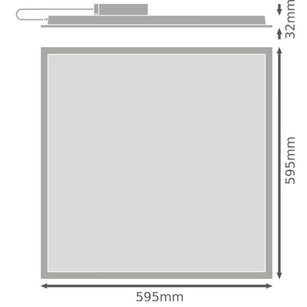Panneau LED LedVance Eco Class Range de 60x60Cm (595x595x10,5), avec une puissance de 36W et 3 600Lm, un angle de faisceau lumineux de 90º et un UGR de 19. Panneau recommandé pour les bureaux car il n'éblouit guère grâce à son UGR, degré de protection IP40/IP20 et résistance IK02.