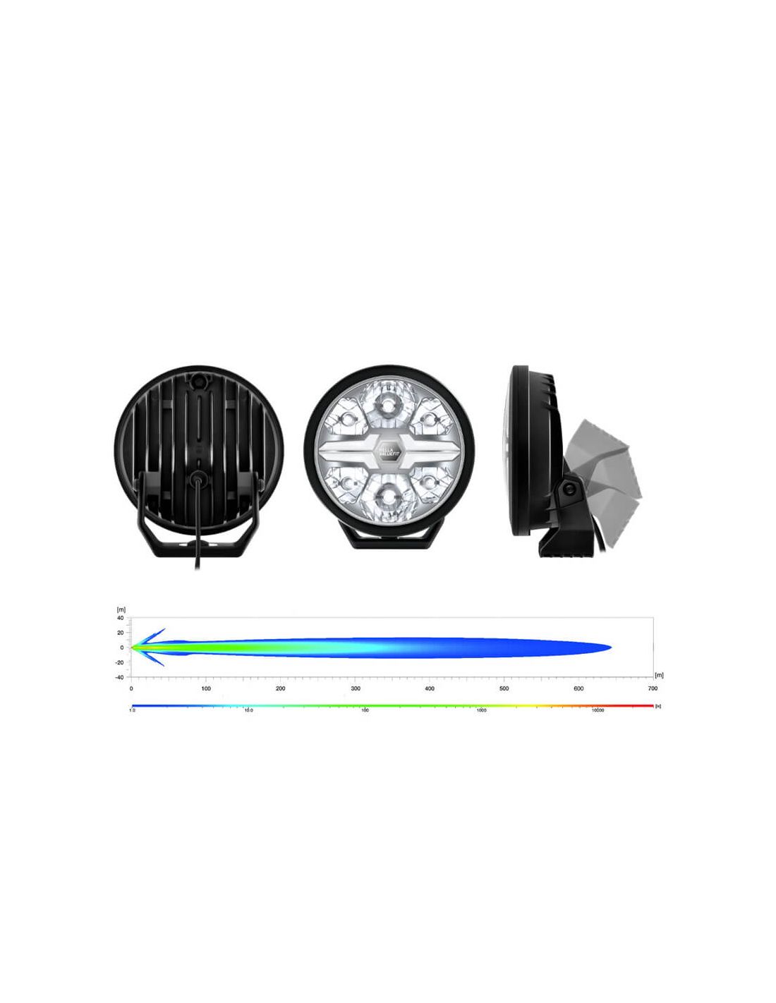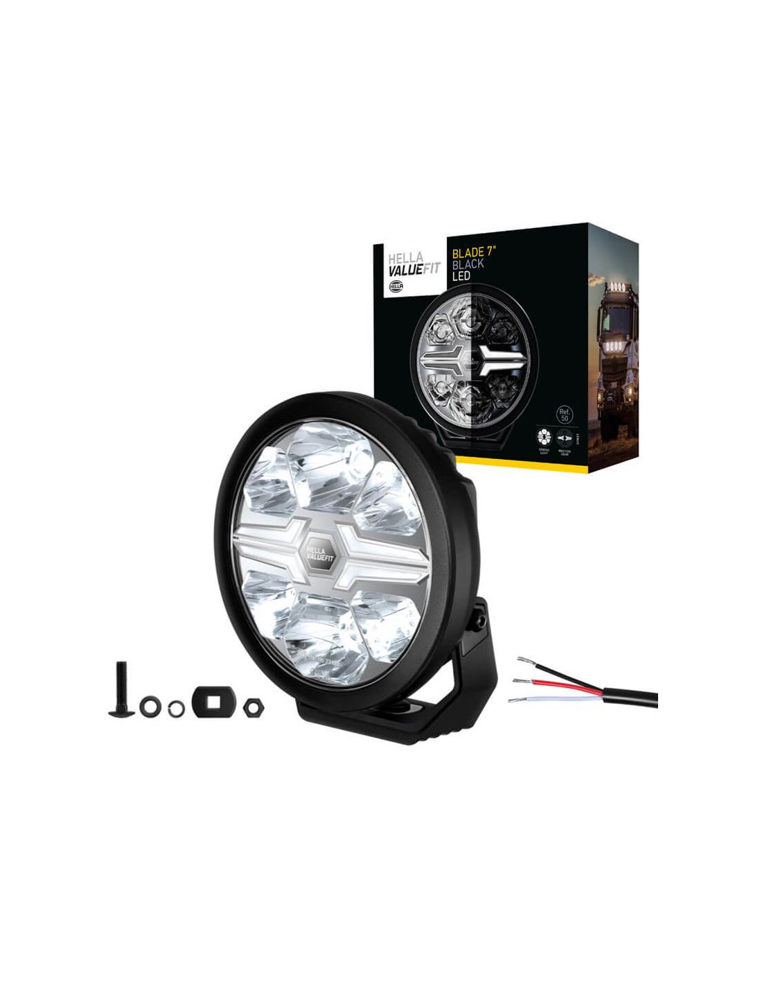 Phare auxiliaire LED rond HELLA Blade Black 7" avec feux de route et de croisement. Boîtier en aluminium noir, 12/24 V, IP66, idéal pour les SUV, les 4x4 et le tout-terrain.