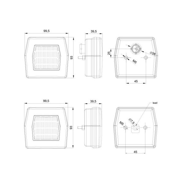 - Feu avant : 12/24v = 1,6/3,2W