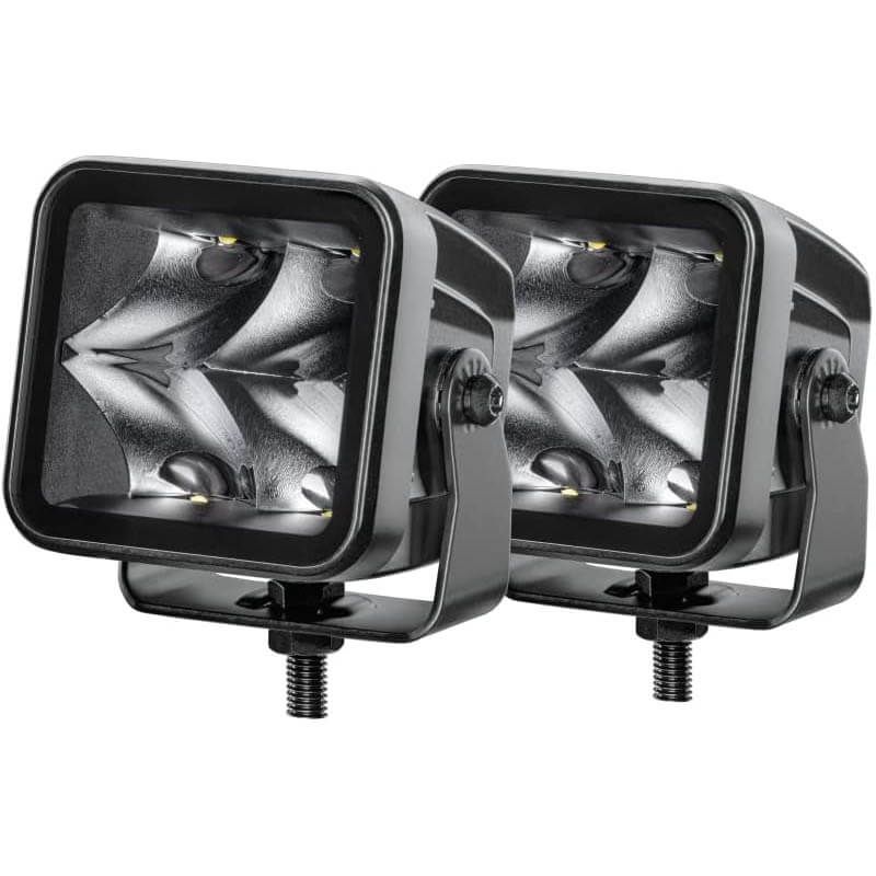 Pack de 2 unités de phares LED carrés Hella, modèle Black Magic Cube, 3.2" pouces, ces phares LED ont une puissance de 3000Lm avec une consommation de 40W, ils fonctionnent sur des tensions de 10V à 30V et les optiques sont longue portée.