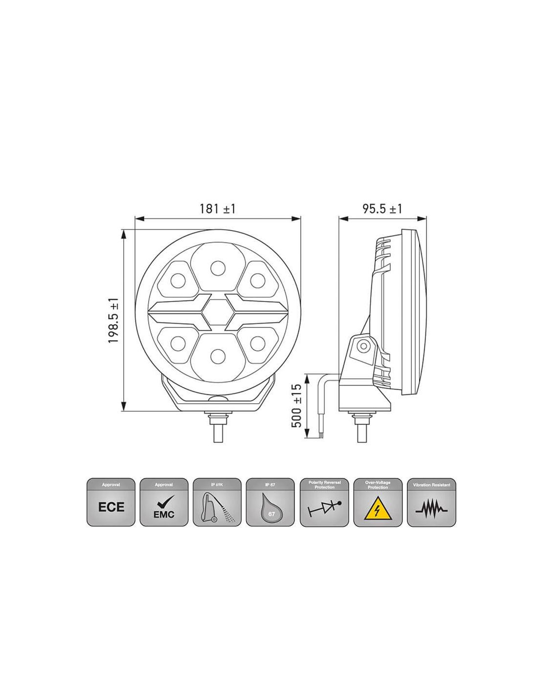 Comprend : Phare LED rond approuvé de 7", avec 0,5 mètre de câble et manuel d'instructions.