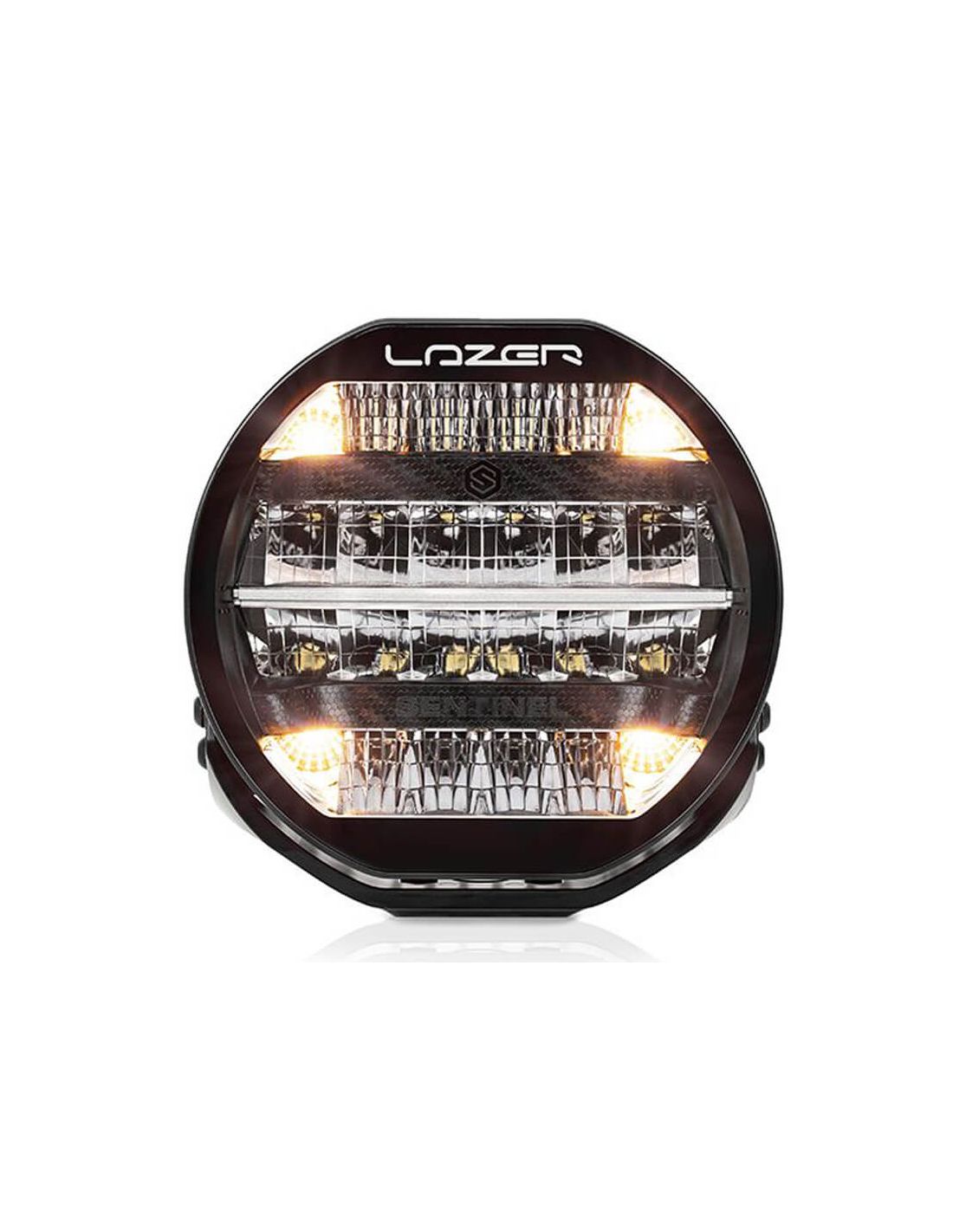 Phare Sentinel 9'' Noir LED avec feu de position blanc ou ambre, 9 529 lumens et technologie E-Boost. Design moderne et homologation ECE R112 et R7, parfait pour la route et le tout-terrain. Comprend un feu de position blanc et orange.