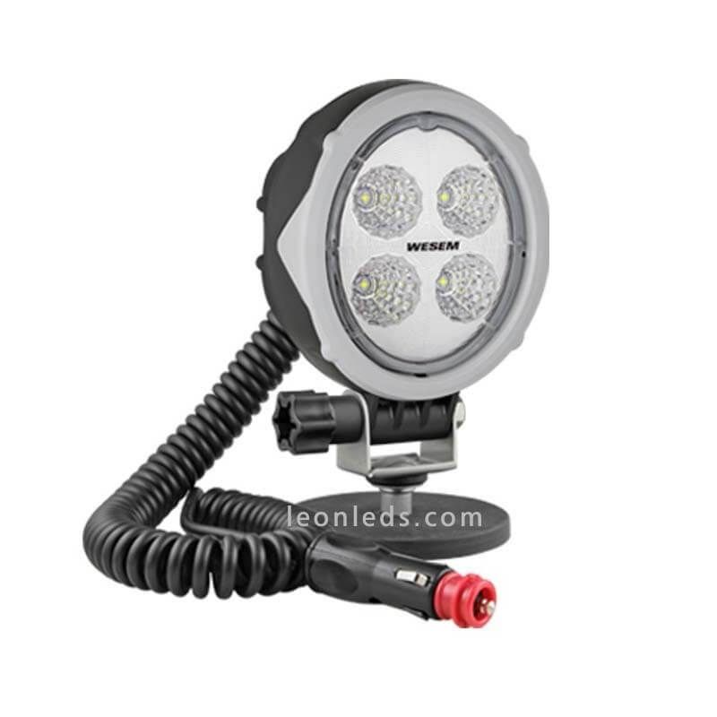 Phare LED ovale de 18W et d'une intensité lumineuse de 1500Lm avec base magnétique, interrupteur marche/arrêt à l'arrière du phare et connexion allume-cigare avec poignée avec optique 55º.