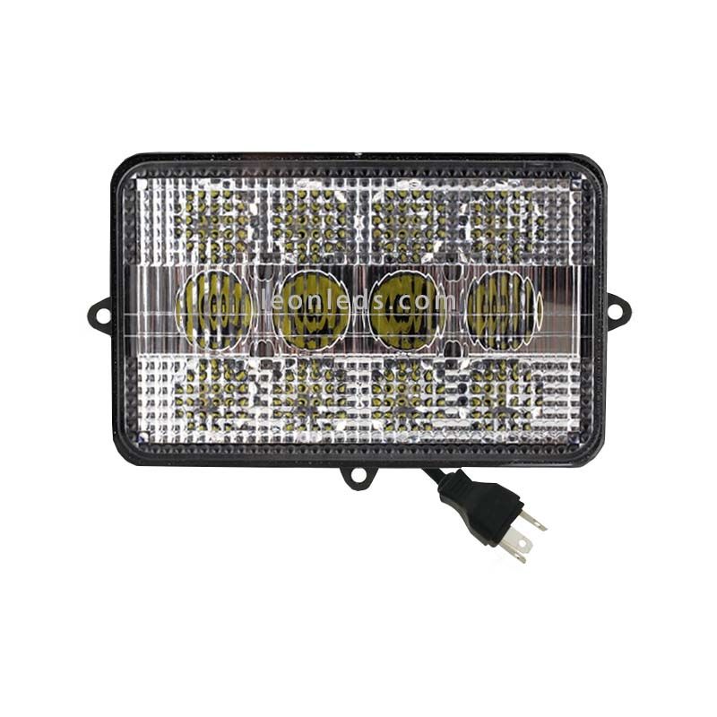 Phare LED rectangulaire pour remplacer sans aucune modification l'ancien phare Halogène des machines John Deere série 9000 d'une puissance de 60W, d'une intensité de 3 650Lm et avec connecteur H4 et 2 fonctions.