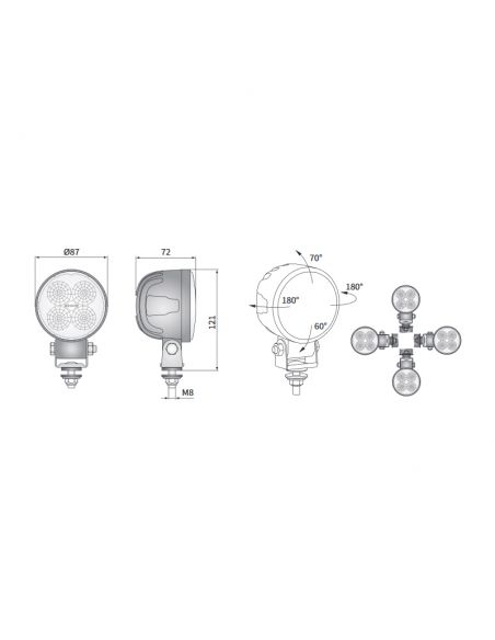 (Dimensions de la lampe de travail LED ronde Ø87)