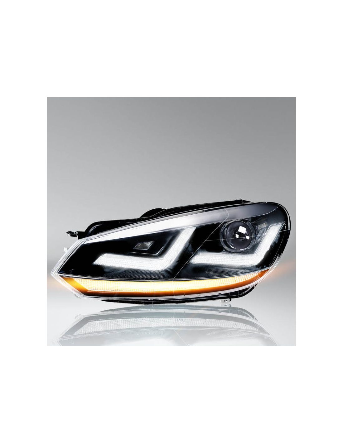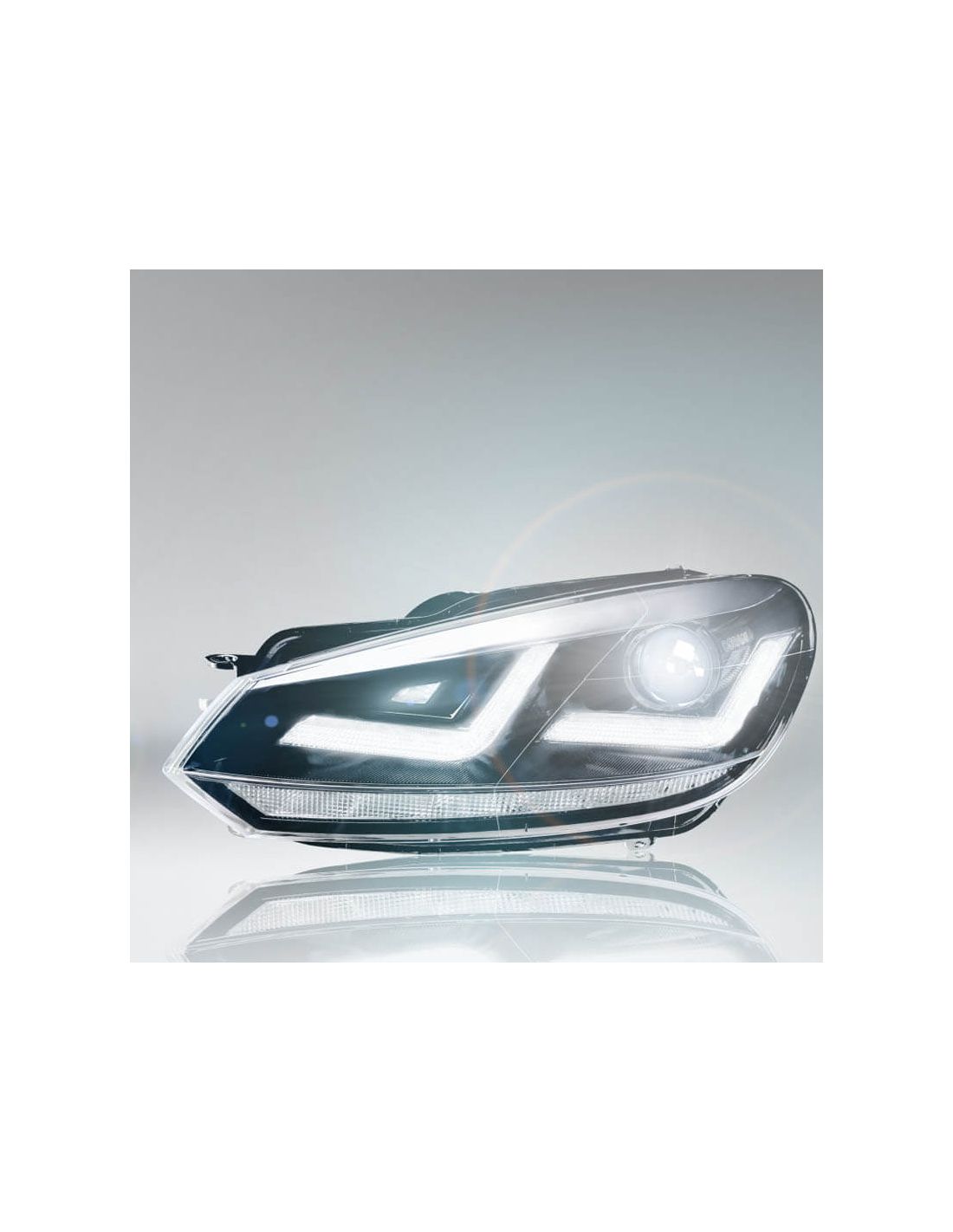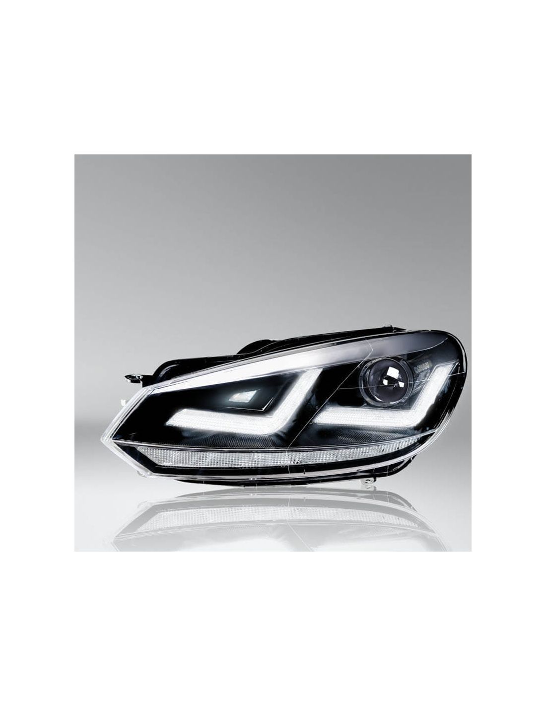 Phares avants à LED homologués pour Volkswagen Golf 6 de la marque Osram avec garantie 2 ans. Comprend clignotant LED progressif, feu de position LED, LED court, lumière du jour et long avec ampoule Xénon incluse.