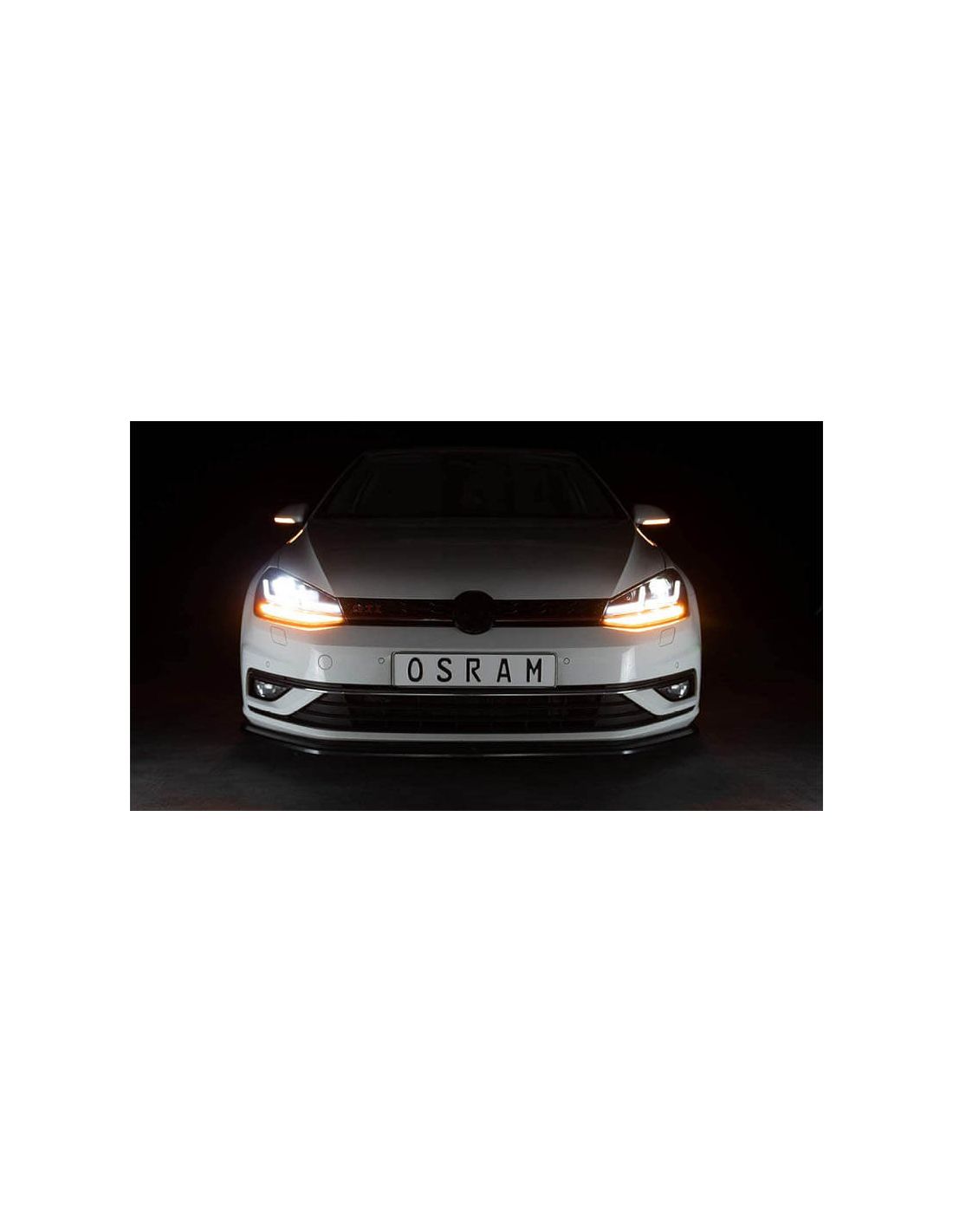 Phares à LED finition Noir homologués pour Volkswagen Golf 7 du Restyling (2017-2020) de la marque Osram avec garantie 2 ans. Comprend un clignotant LED progressif, un feu de position LED, une LED courte, un feu diurne et une LED longue, c'est un phare Full LED. Valable pour Golf 7restiling qui comprend les phares halogènes d'origine et les phares au xénon.