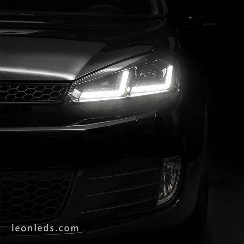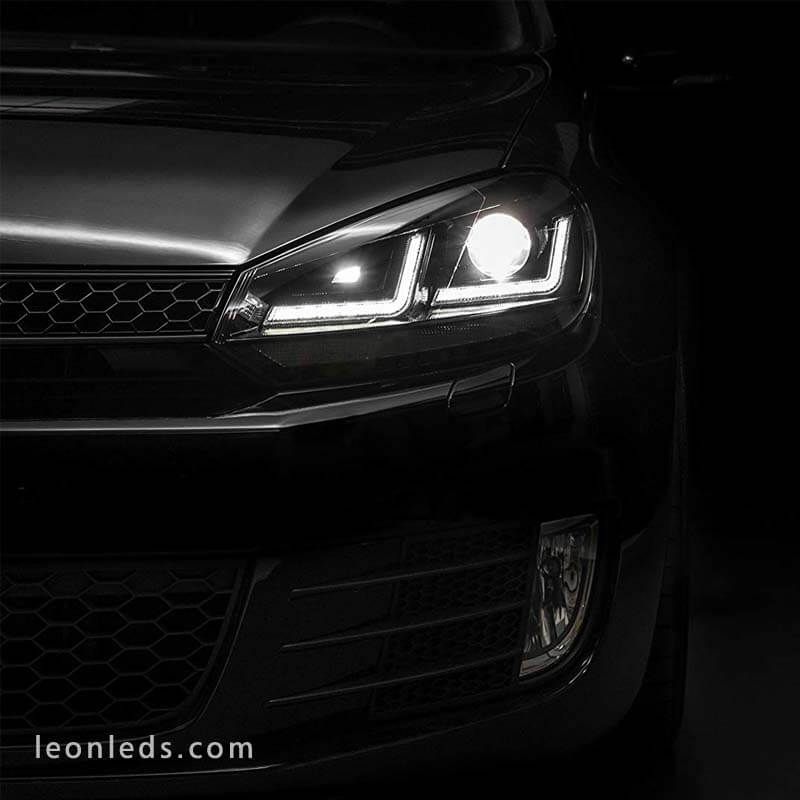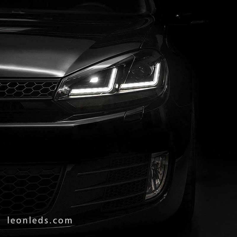 Phares LED homologués Osram pour la Volkswagen Golf 6 avec une garantie de 2 ans. Comprend un feu clignotant à LED progressif, un feu de position à LED, un feu de croisement à LED, un feu de jour et un feu de route avec ampoule au xénon incluse.