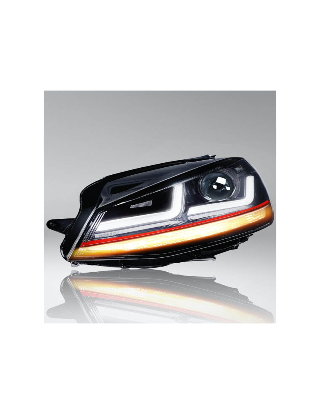 Phares avant LED GTI homologués pour Volkwagen Golf 7 avant Restyling (2012-2016) de la marque Osram avec 2 ans de garantie. Il comprend un clignotant à LED progressif, un feu de position à LED, des feux de croisement à LED, des feux de jour et des feux de route à LED, c'est un phare Full LED. Valable pour la Golf 7 qui comprend les phares au xénon.