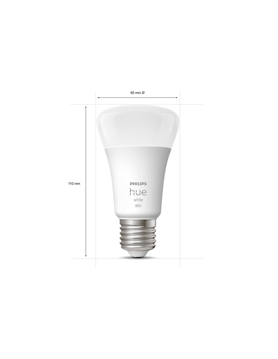 Ampoule intelligente Philips HueWhite 9W A60 2700K lumière blanche chaude dimmable E27 806lm Pack 3 mesures produit