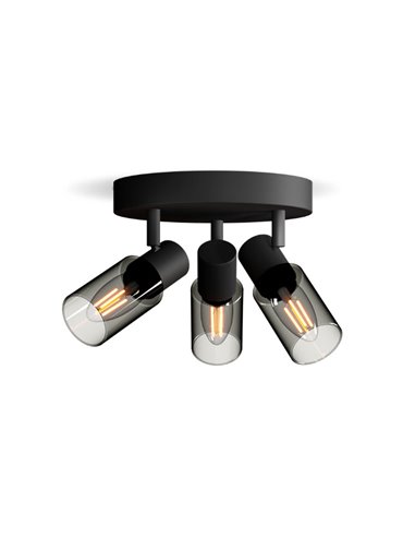 Barre de spots SLEET 2 avec verre rond noir fumé . Compatible avec 2 ampoules E14 (non incluses) et installation facile avec ClickFix . Ajoutez une touche moderne à n'importe quelle pièce.