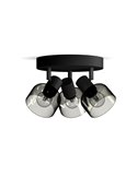 Plafonnier SLEET avec 3 spots ronds en verre noir fumé . Compatible avec 3 ampoules E14 (non incluses) . Installation facile grâce au système ClickFix . Design moderne pour n’importe quel espace.