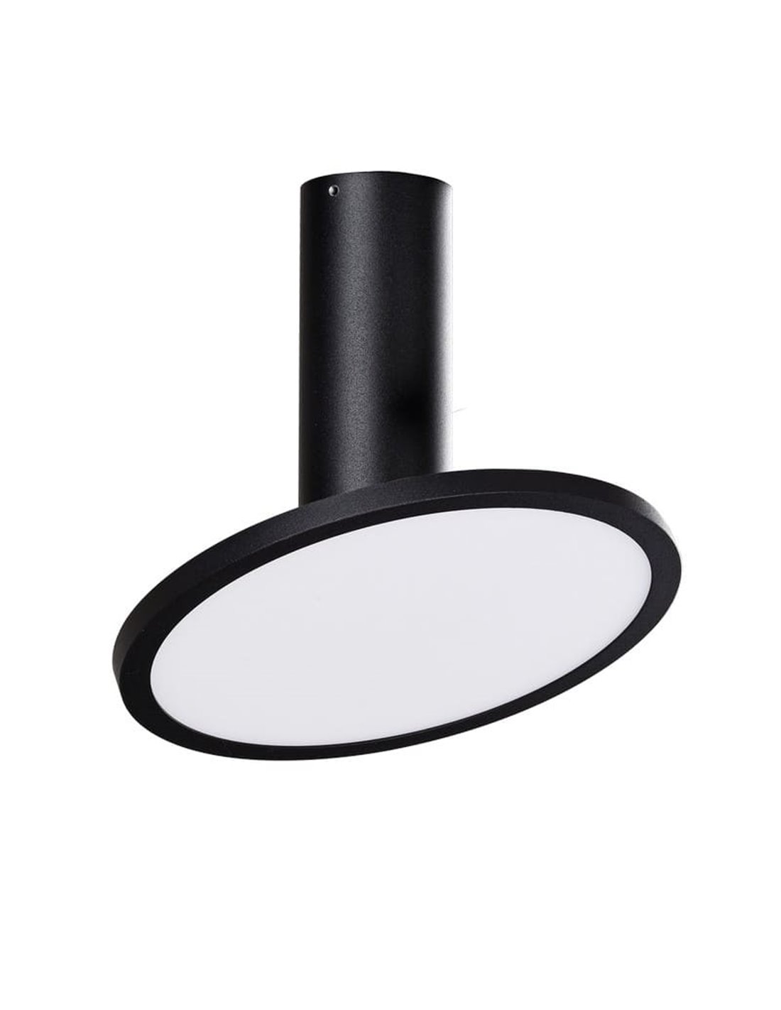 Plafonnier LED MORGAN avec spot orientable en noir texturé, 18W, 3000K et 1600lm. Design moderne et réglable pour un éclairage précis.