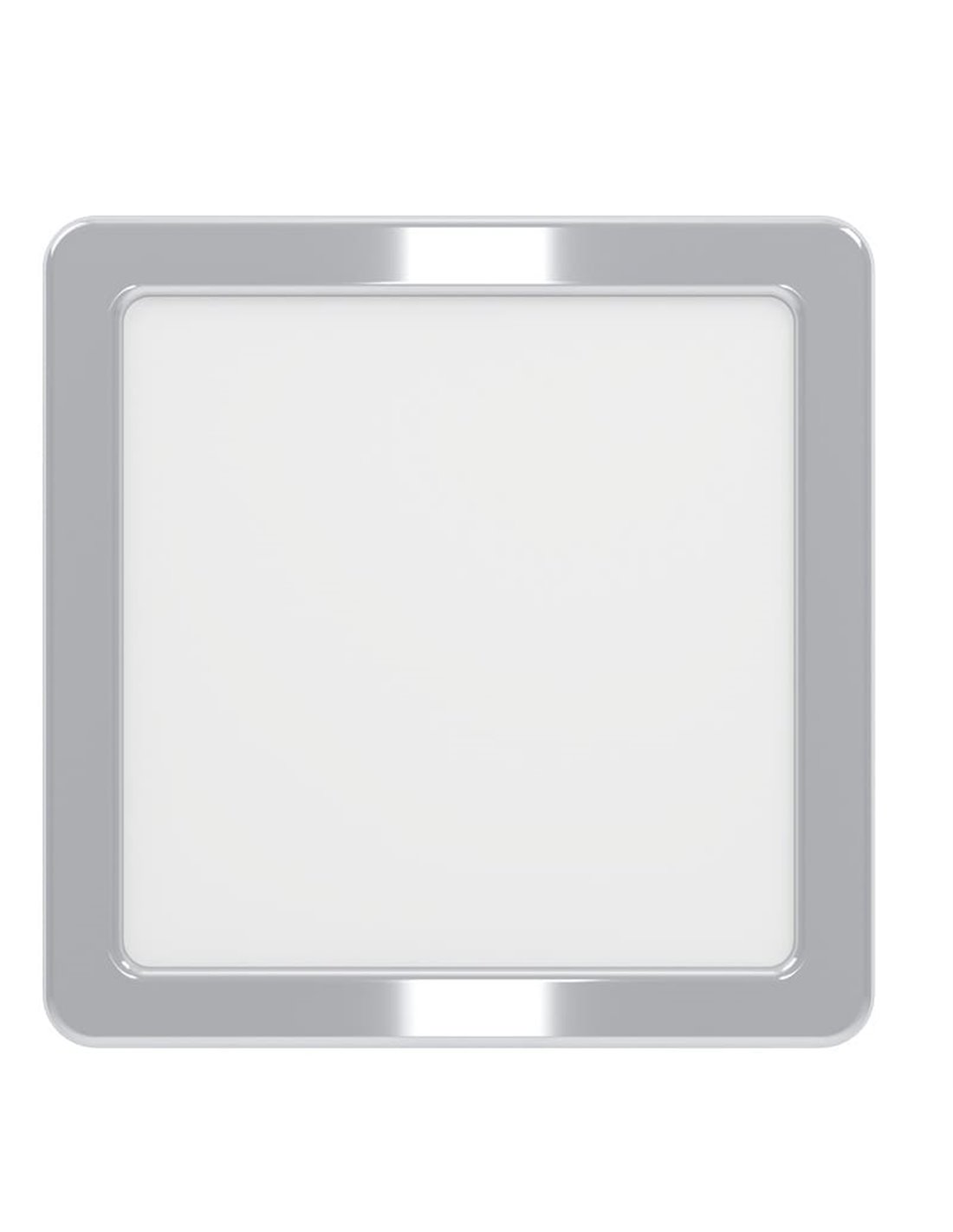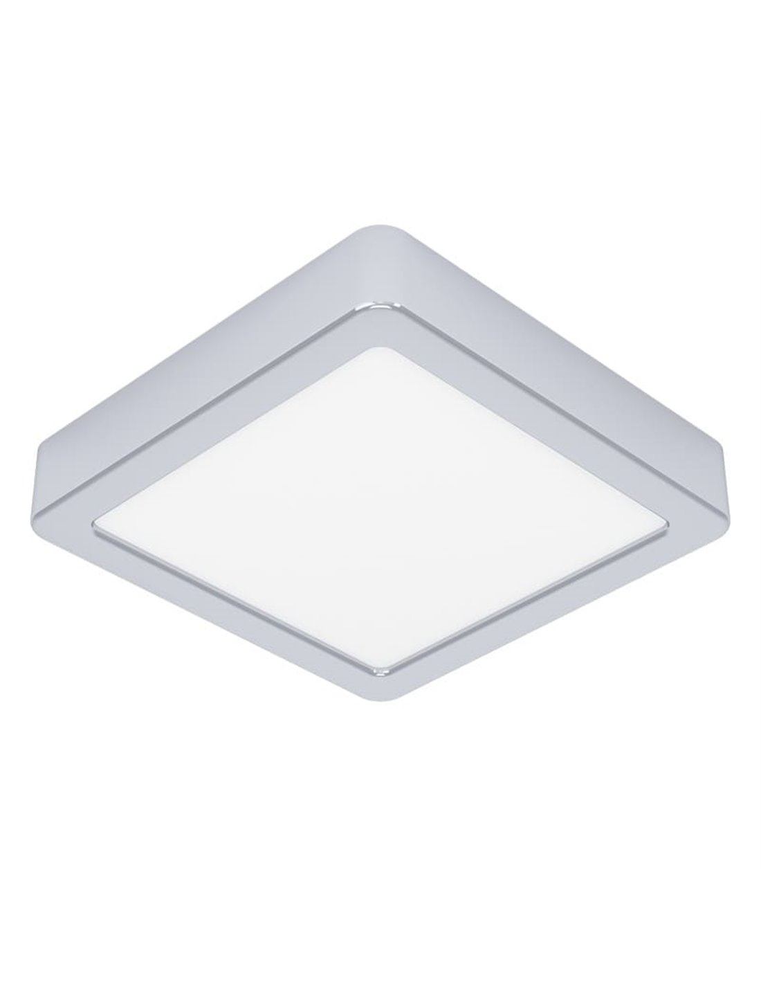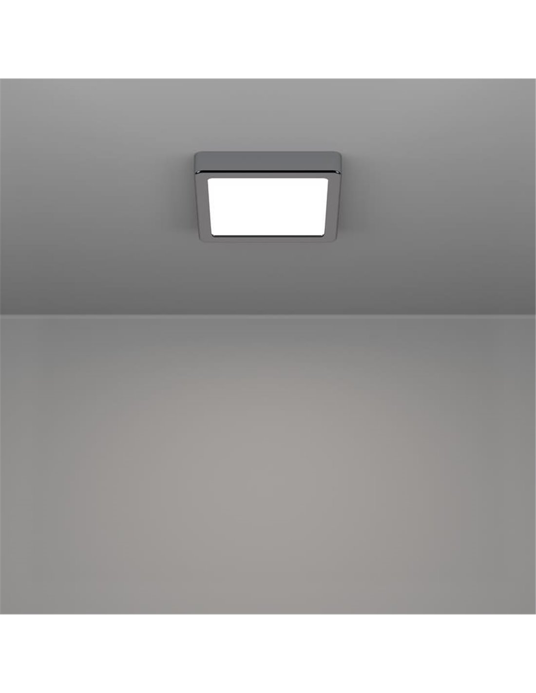 Plafonnier LED FUEVA 6 chromé . 6,3 W, 720 lumens et éclairage CCT (2700 K-6500 K). Dimensions : 150 x 150 x 28 mm. Indice de protection IP44, idéal pour les salles de bains et les cuisines.