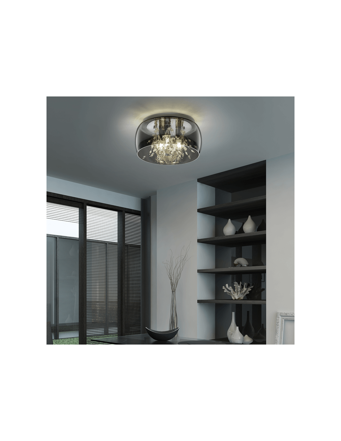 Plafonnier verre fumé noir 5 lumières grand 28W Crystel