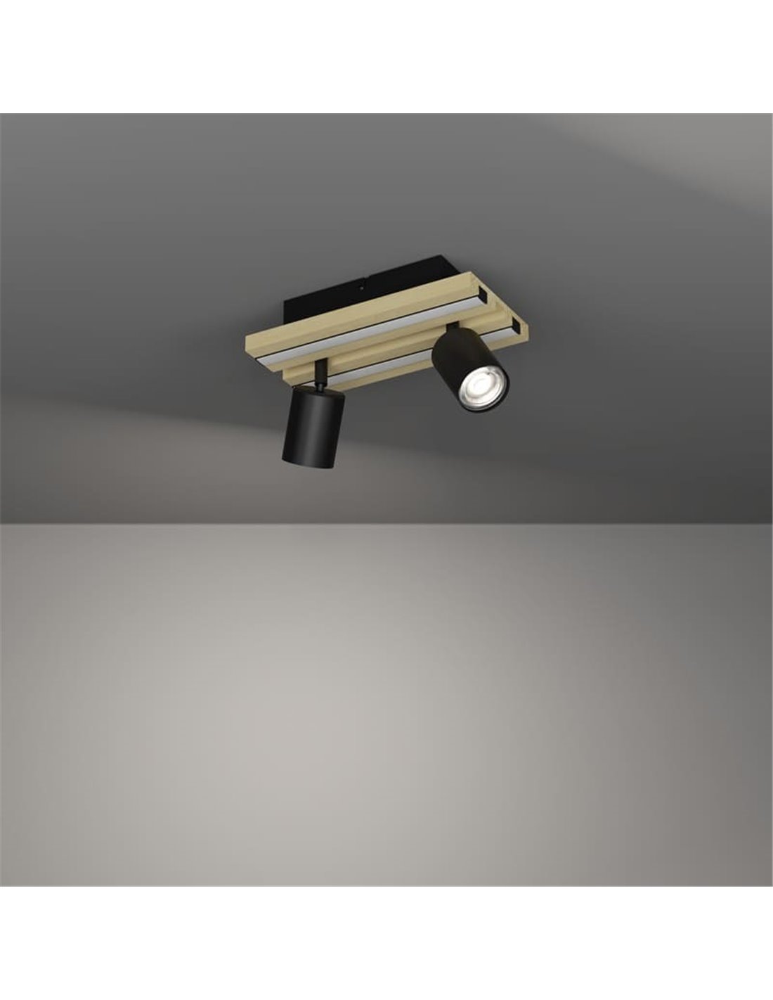 Le plafonnier LED GESTEIRA associe un panneau en bois naturel à un cadre noir , intégrant des bandes LED pour l'éclairage général et deux spots orientables pour illuminer des zones spécifiques. Il diffuse une lumière chaude , agréable et non éblouissante, et dispose d'une fonction mémoire pour rappeler le dernier réglage.