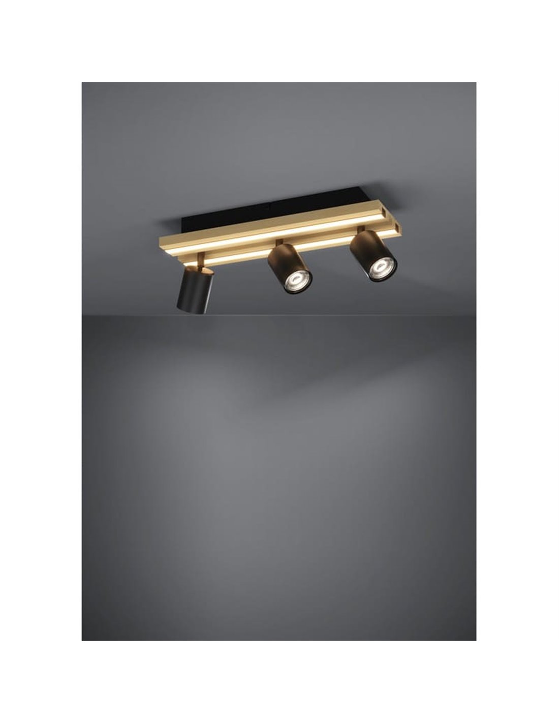 Cette version élargit la zone d'éclairage grâce à ses trois spots orientables , idéale pour les pièces où l'on souhaite éclairer plusieurs zones simultanément sans sacrifier un design chaleureux avec du bois.