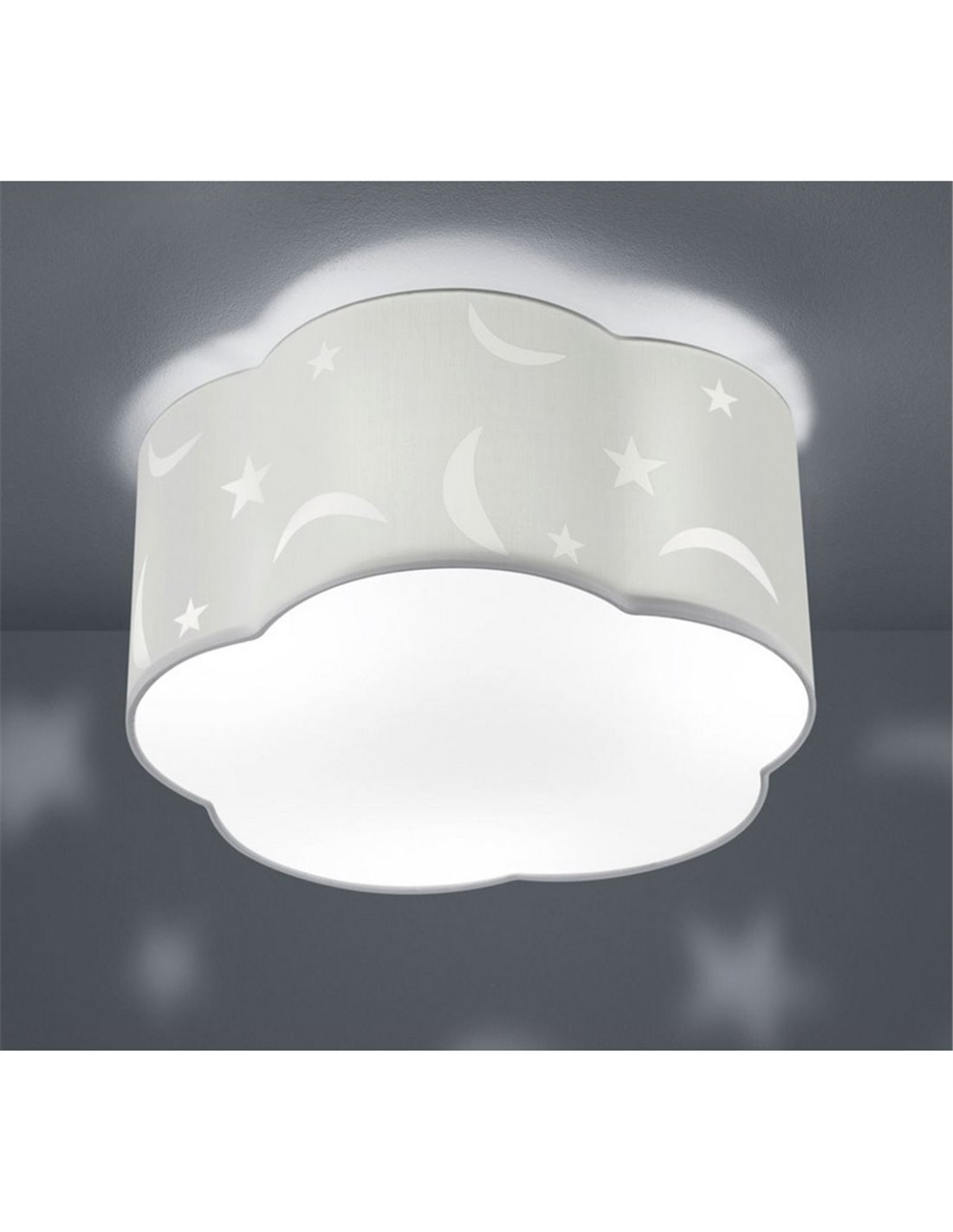 Grand plafonnier enfant étoiles et lunes avec un abat-jour de 40cm de diamètre qui permet d'installer 3 ampoules LED avec filetage E27 et diffuseur de lumière inférieur.
